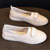 Sapatos brancos de couro de primeira camada 2023 Novos sapatos femininos primavera e verão para todos os jogos de couro plano de boca rasa sapatos slip-on