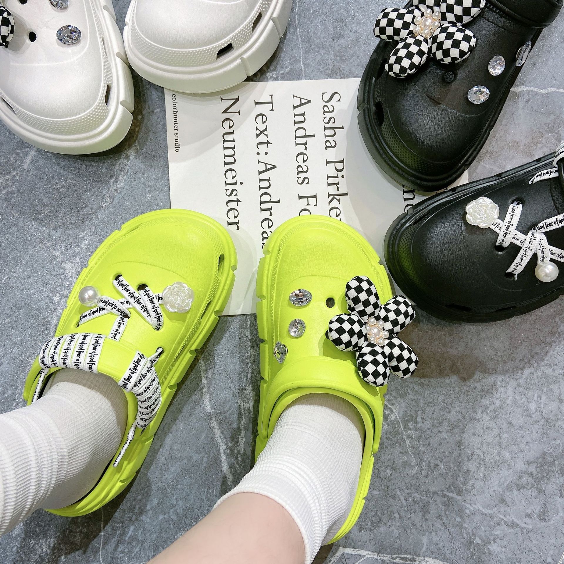 Compre Novos sapatos com furos transfronteiriços, fivela decorativa para sapatos, faça você mesmo, acessórios de tira de flor xadrez, fivela de sapato de flor removível no atacado no Joom.pro