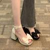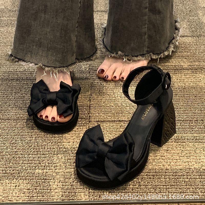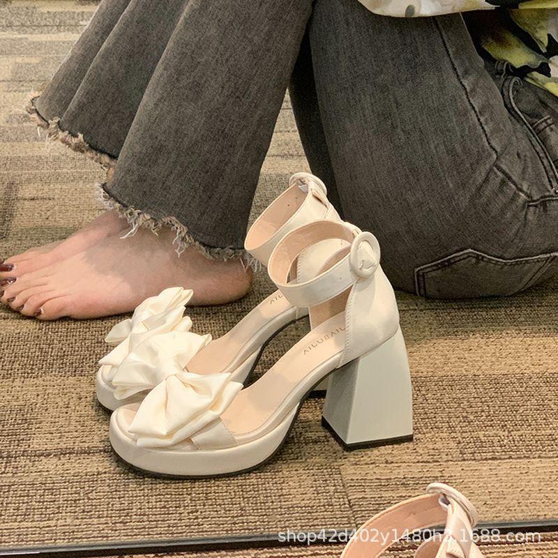 Salto Alto 2024 Novo Arco Feminino Sandálias Ocas Plataforma de Fada Fundo Grosso Aumentado