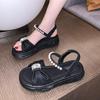 Sandálias Estilo Fada 2025 Novo Estilo de Verão com Saia Sapatos Romanos de Sola Grossa Pérola Francesa Strass Sapatos de Praia