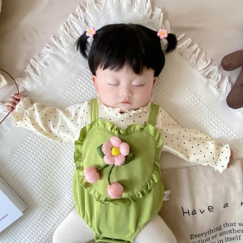 Bainha roupas primavera roupas de bebê tridimensional pequena flor bebê menina roupas macacão de bebê manga comprida roupas recém-nascidas