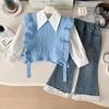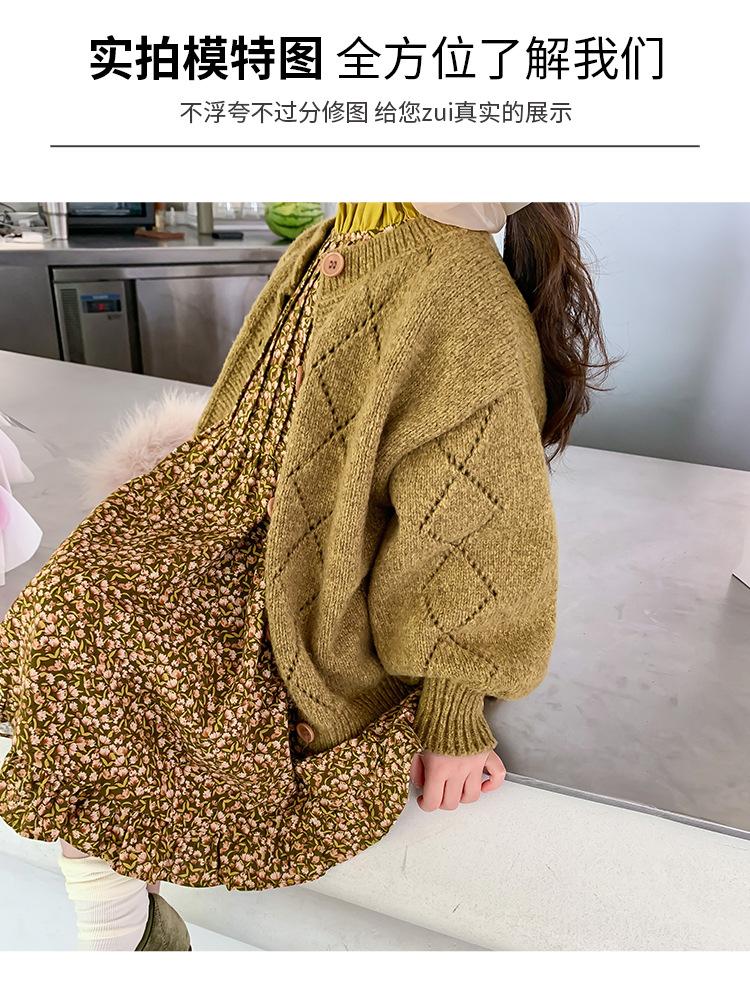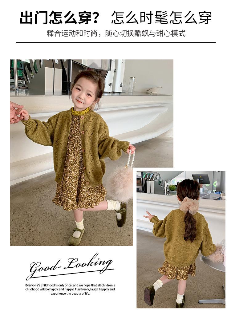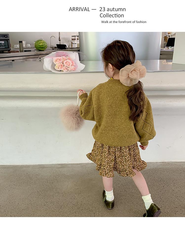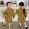 Conjunto de Suéter de Diamante para Meninas e Saia Floral Primavera/Outono 2025 Novo Estilo Roupas Infantis da Moda Conjunto Popular de Duas Peças