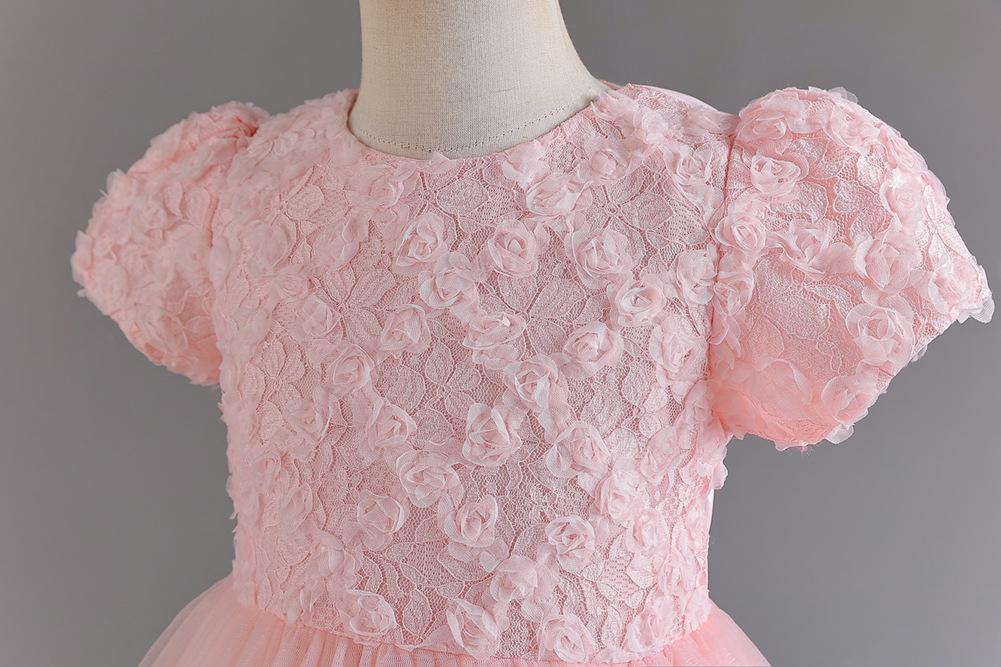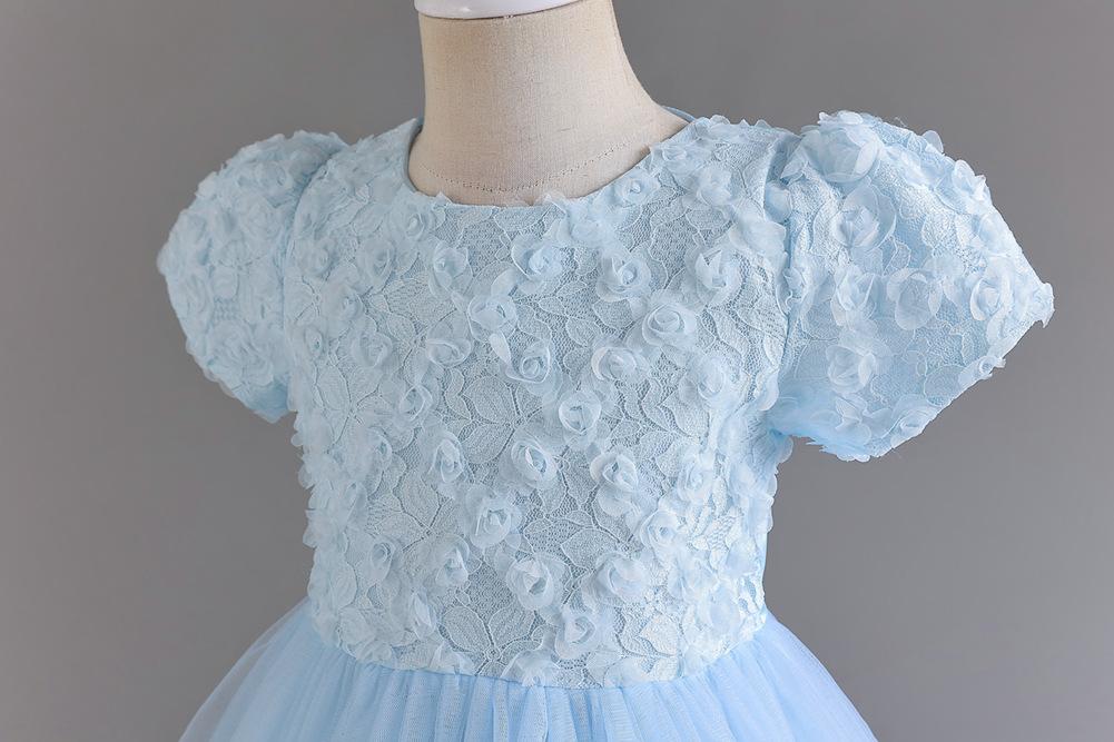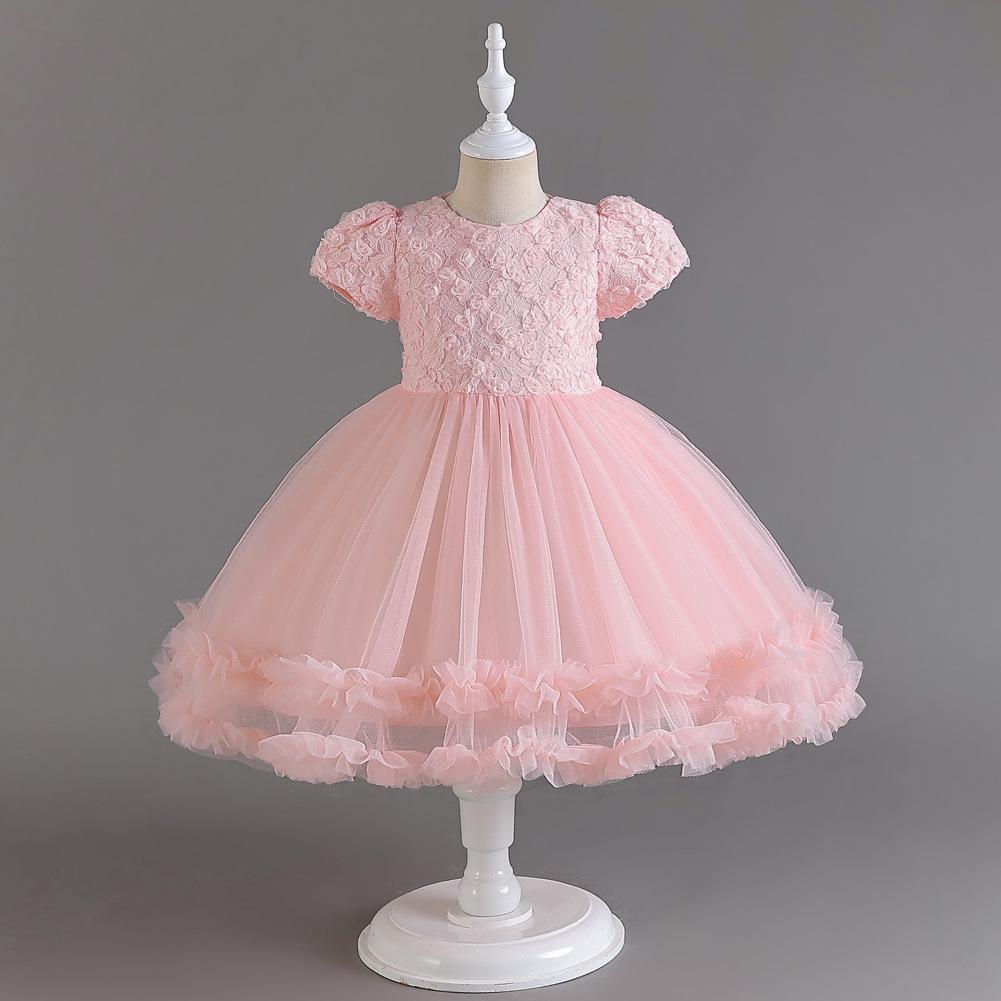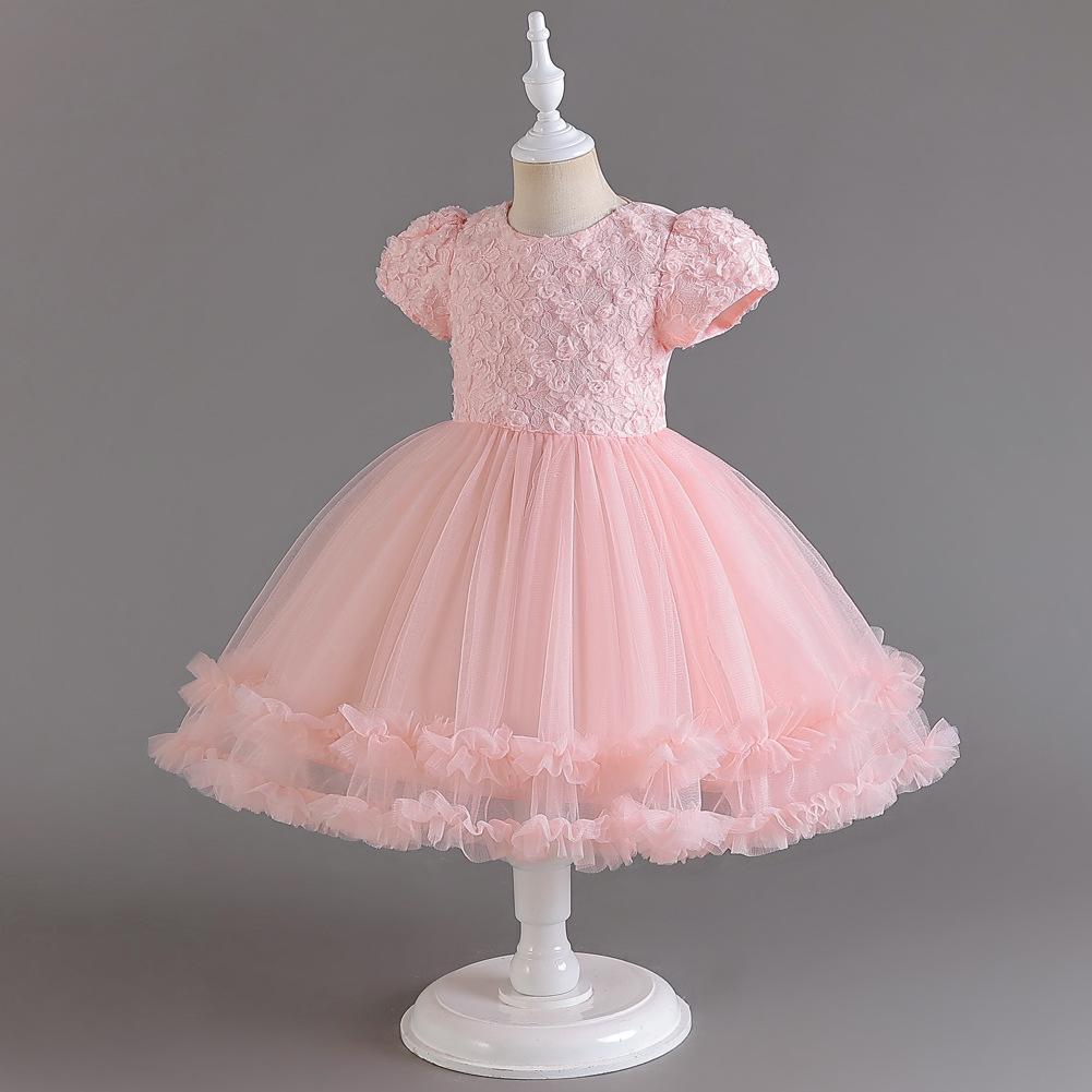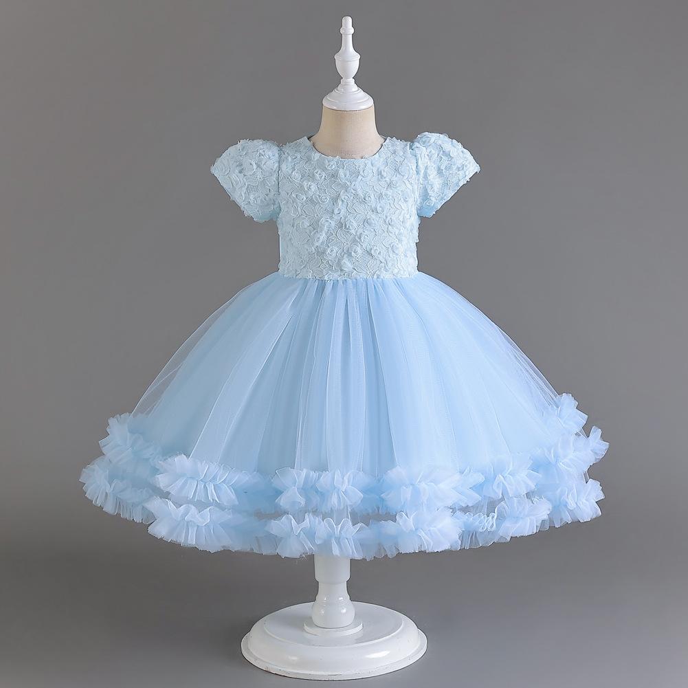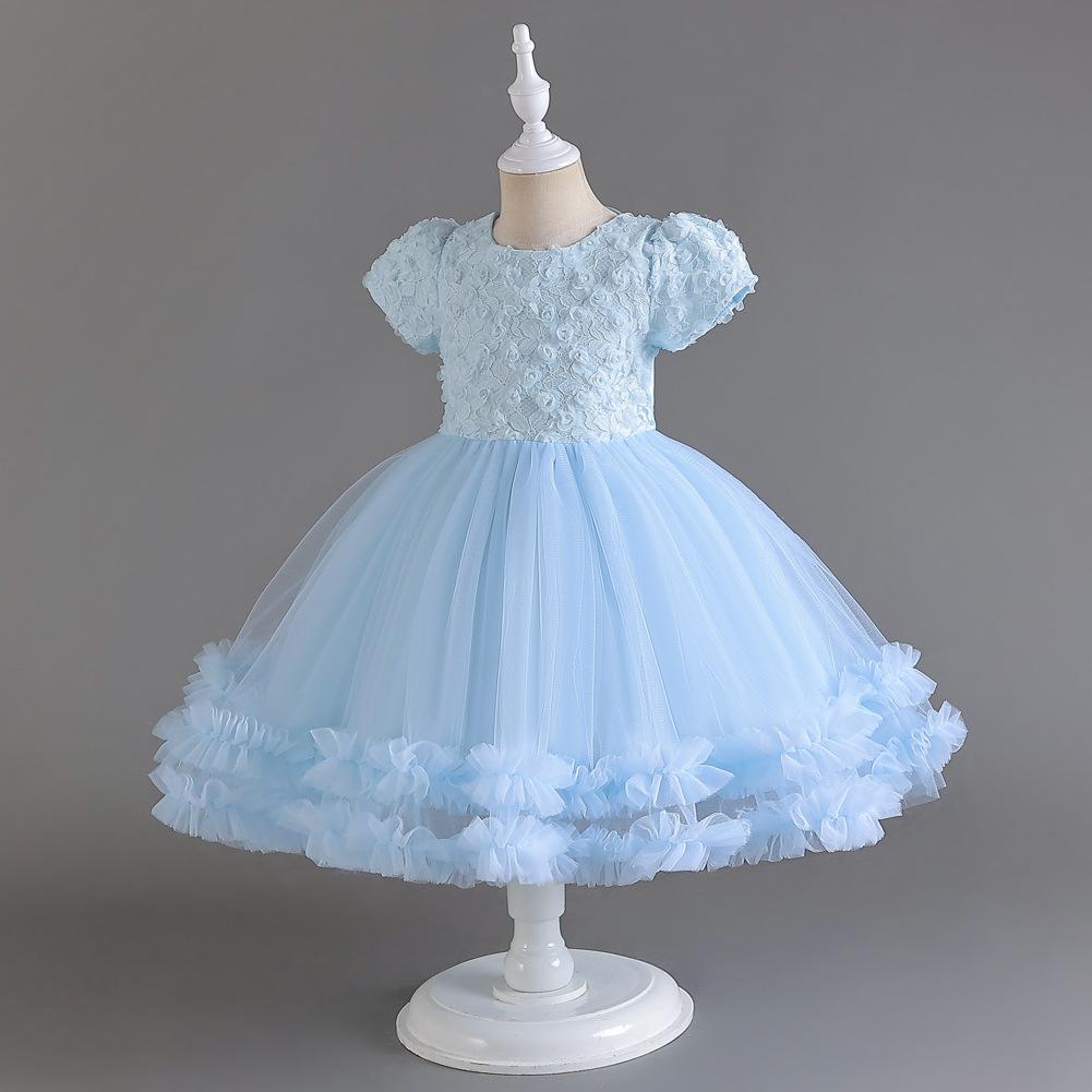 Meninas vestido de princesa bordado vestido de bebê vestido costurado à mão frisado flor menina vestido de casamento comércio exterior fabricantes de roupas infantis atacado