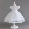 Novo vestido de princesa para crianças, vestido de casamento, saia tutu, cauda de renda, bordado, piano, fantasia de performance de natal, atacado