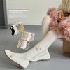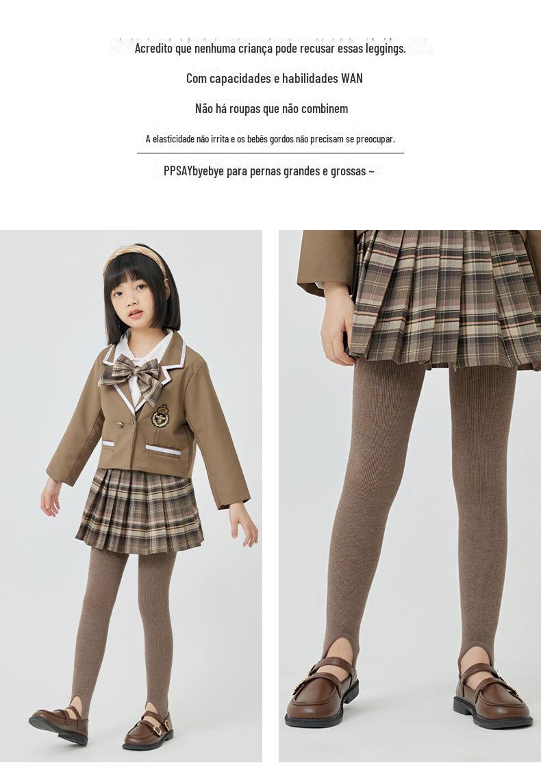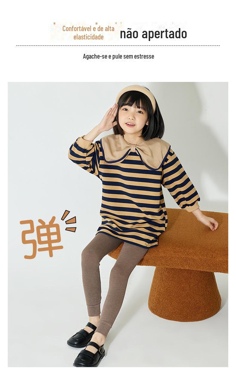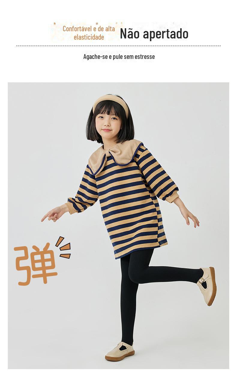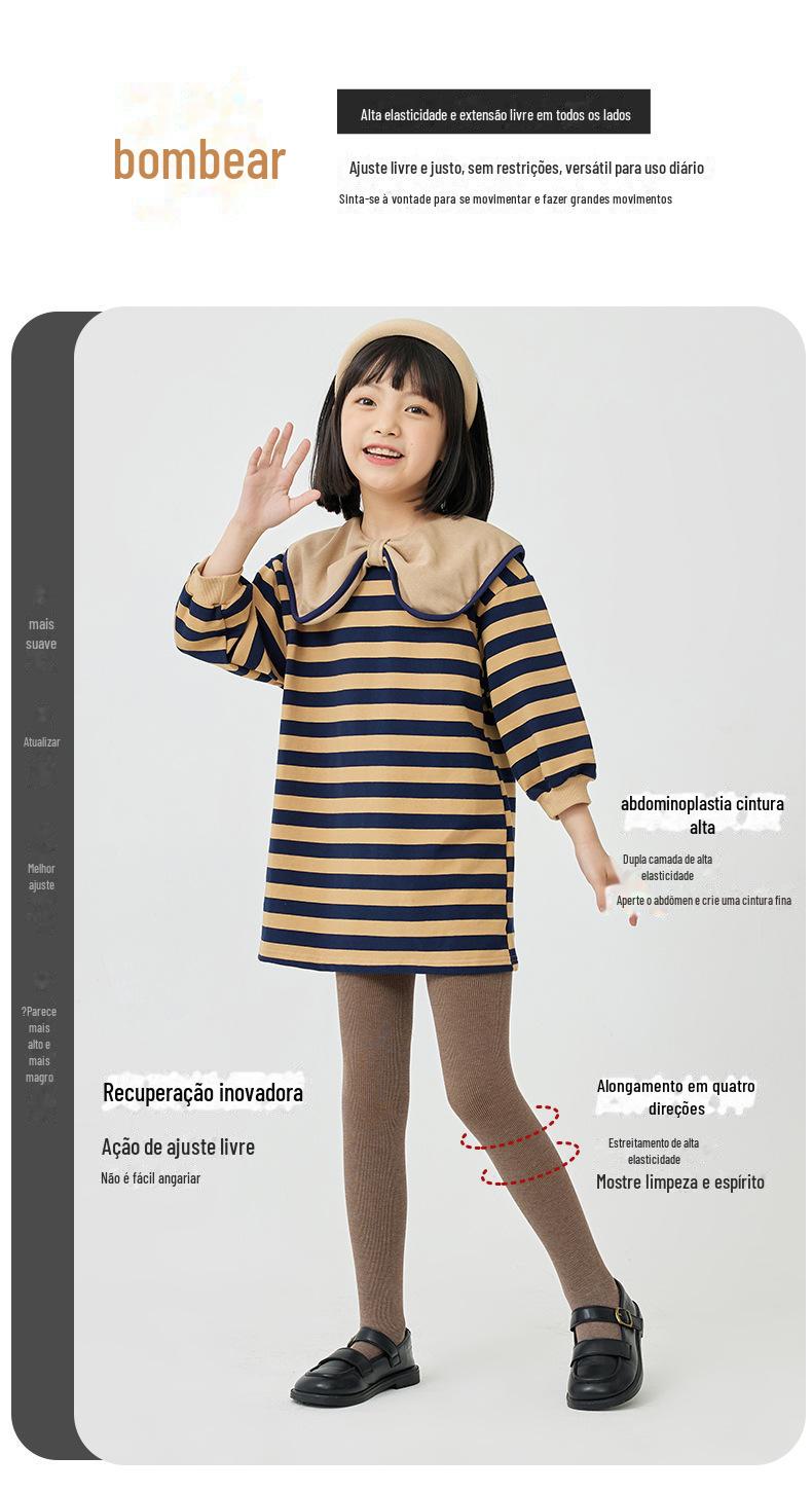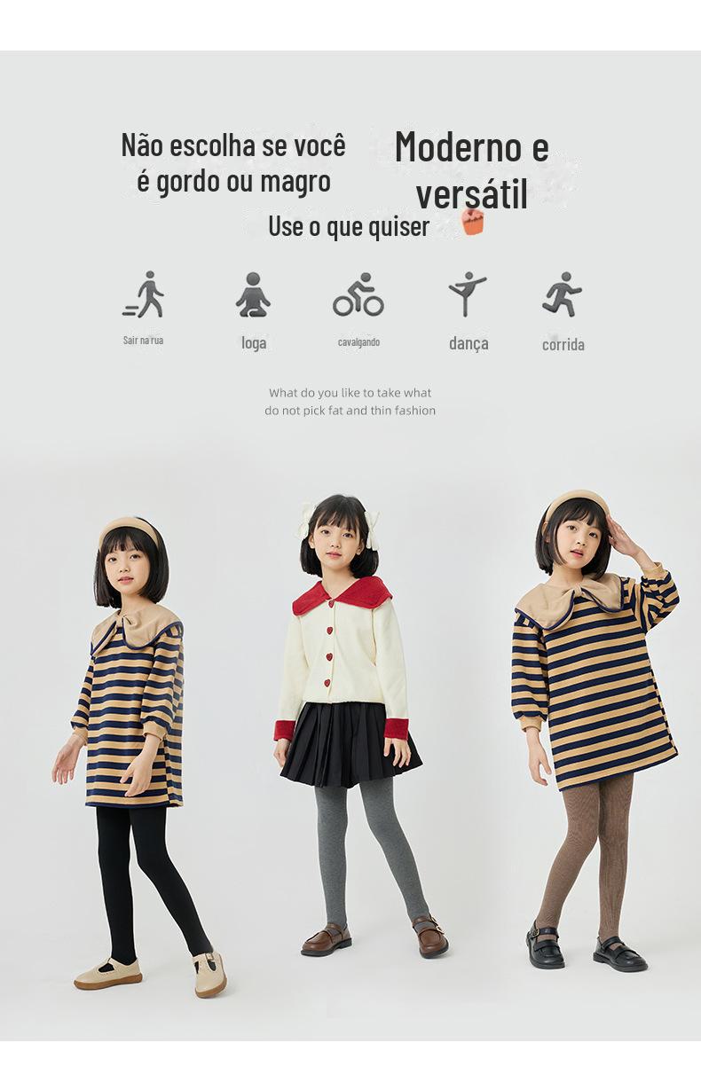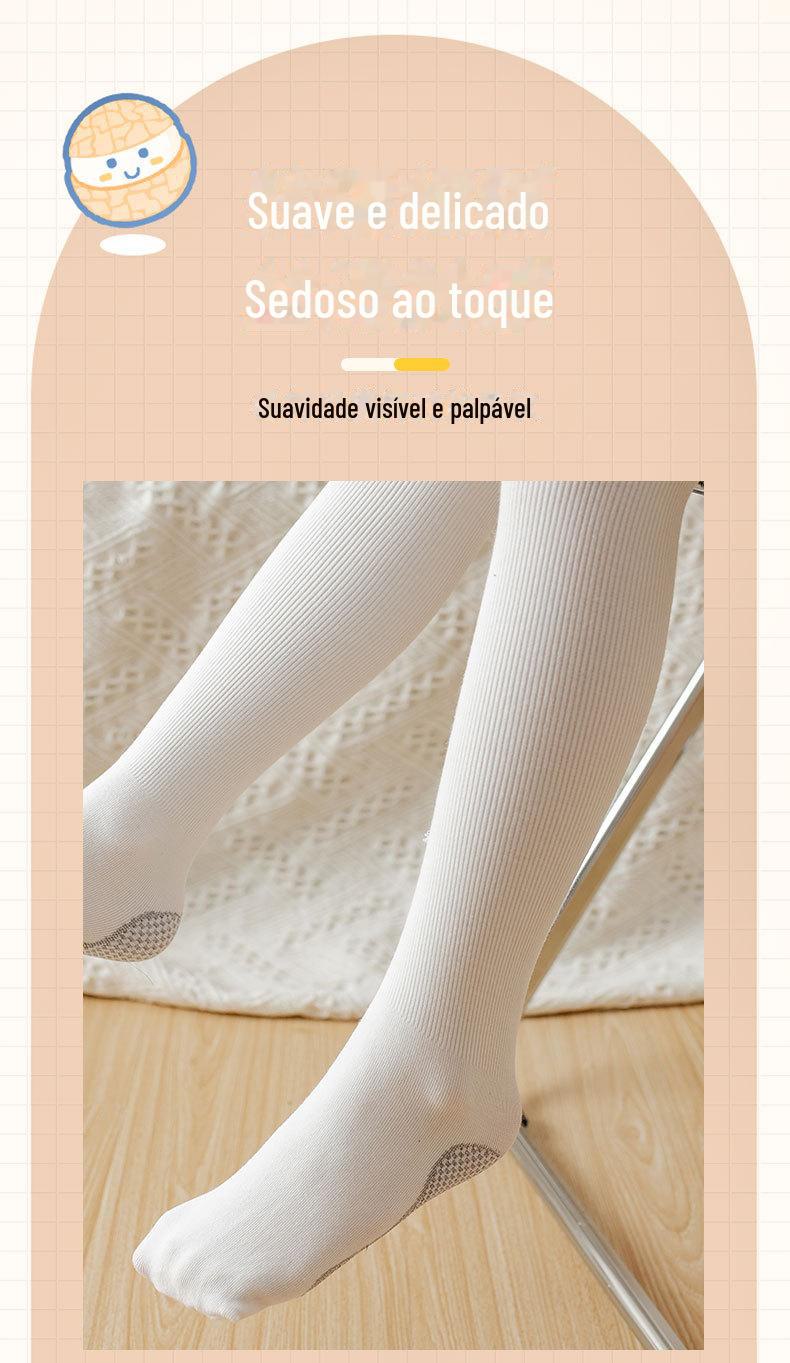 Meia-calça listrada vertical das meninas das leggings das meninas da primavera e do outono das crianças da sola da meia-calça do Não-deslizamento Meia-calça funcional da dança branca