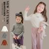 Camiseta das meninas outono e inverno 2023 nova camisa infantil meia gola tartaruga casual camisa de fundo carta estampada manga comprida quente