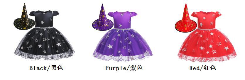 Novo vestido de princesa para crianças de Halloween, vestido médio e grande, fantasia cosplay com chapéu de bruxapeça agora