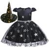 Trajes de halloween trajes de desempenho das crianças cosplay meninas vestido de princesa bruxa saia trajes de desempenho com chapéupeça agora