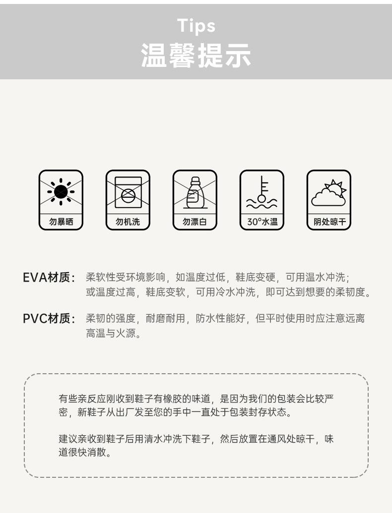 7: Lembrete: chinelos de EVA devem ser mantidos longe de altas temperaturas. Altas temperaturas a longo prazo podem deformar os calçados.