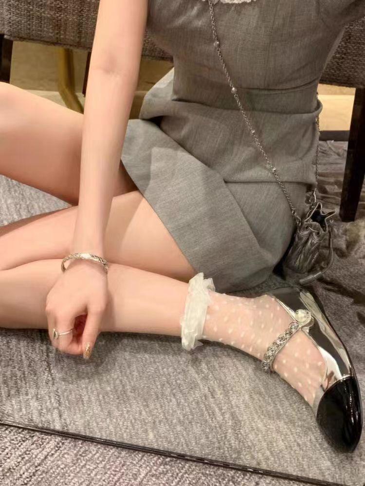 Meias de Cristal de Renda Branca Meias de Cano Curto Femininas Verão Finas Curtas Polo Bolinhas Meias de Pilha Estilo Japonês