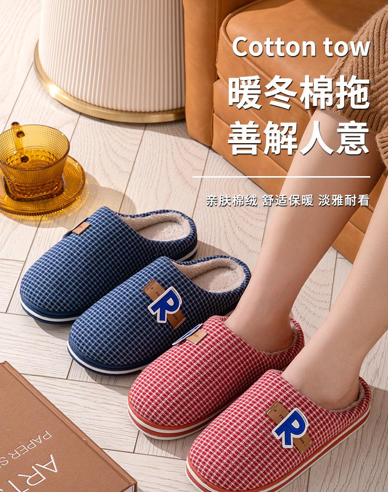 Pantufas de Algodão para Casal Tamanho Grande Masculino Interior Antiderrapante Quente Tecido Pantufas Sapatos de Casa Cixi Estilo Casal