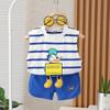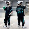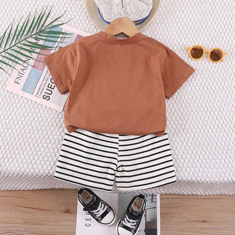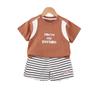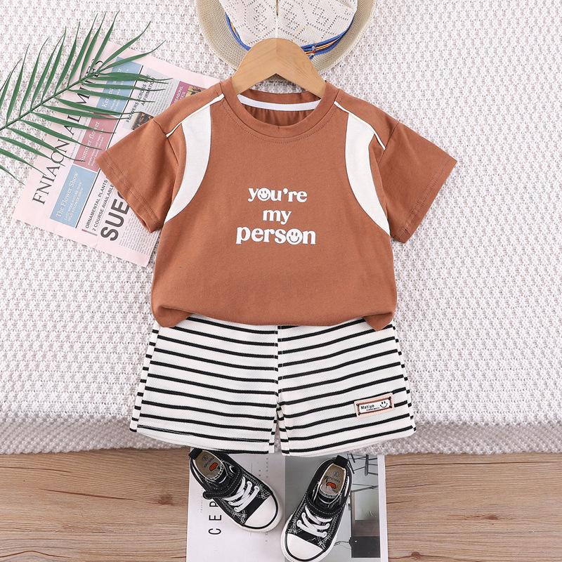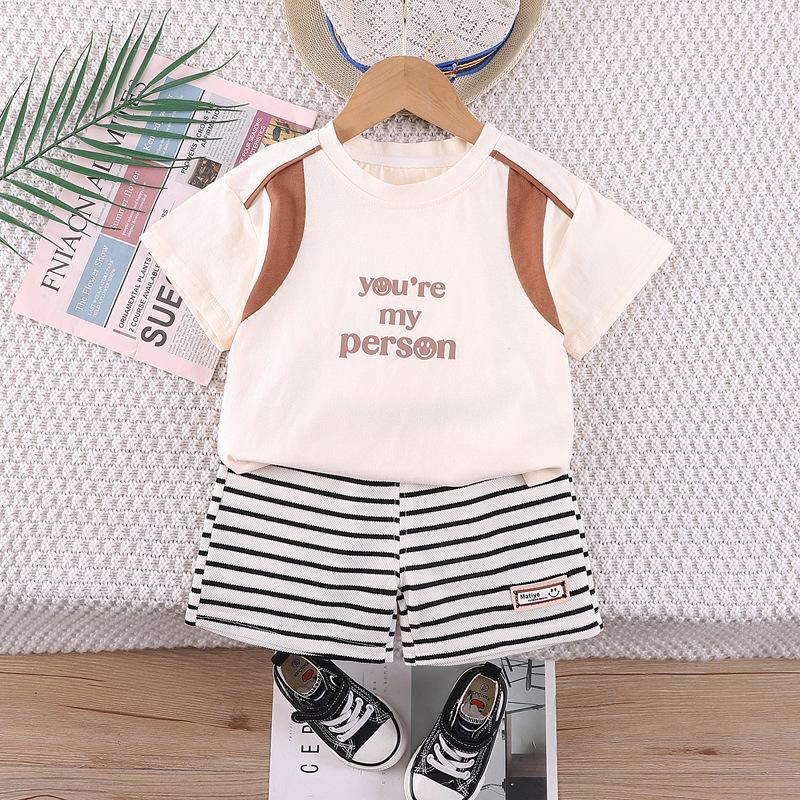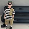 Terno de verão para meninos, verão 2024, novo estilo coreano, solto, pequeno e médio, manga curta, roupa esportiva para meninos, duas peças, moda