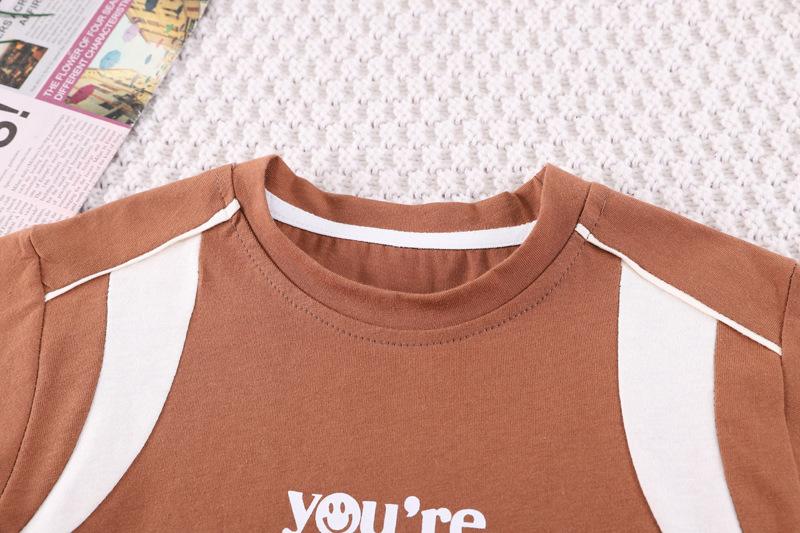 Short-sleeved letter sliver pants cover brown