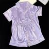 Pijama feminino plus size de seda gelo, primavera e verão, manga curta, fino, solto, imitação de seda, roupa de casa, atacado