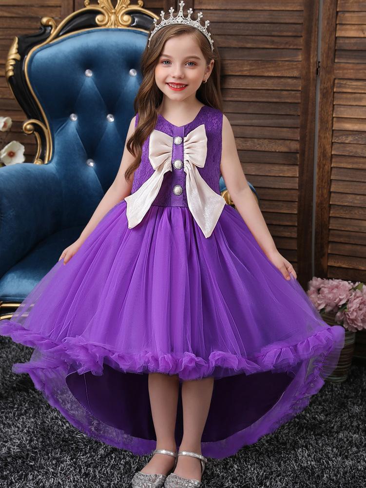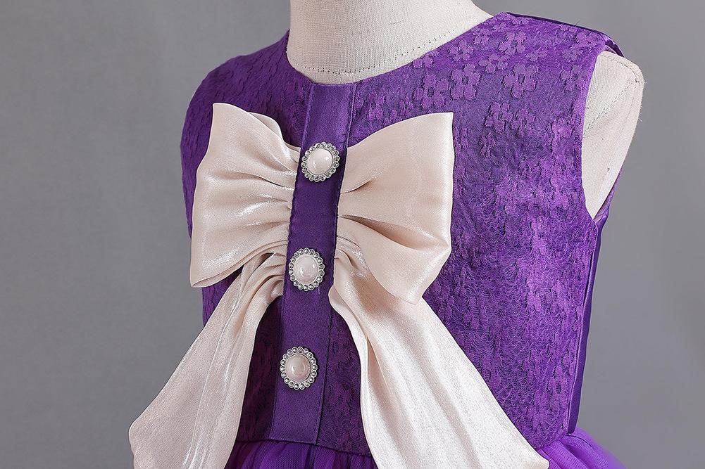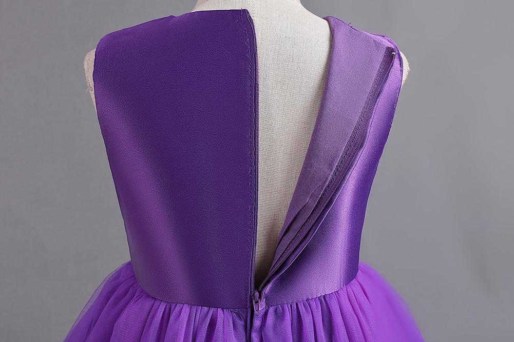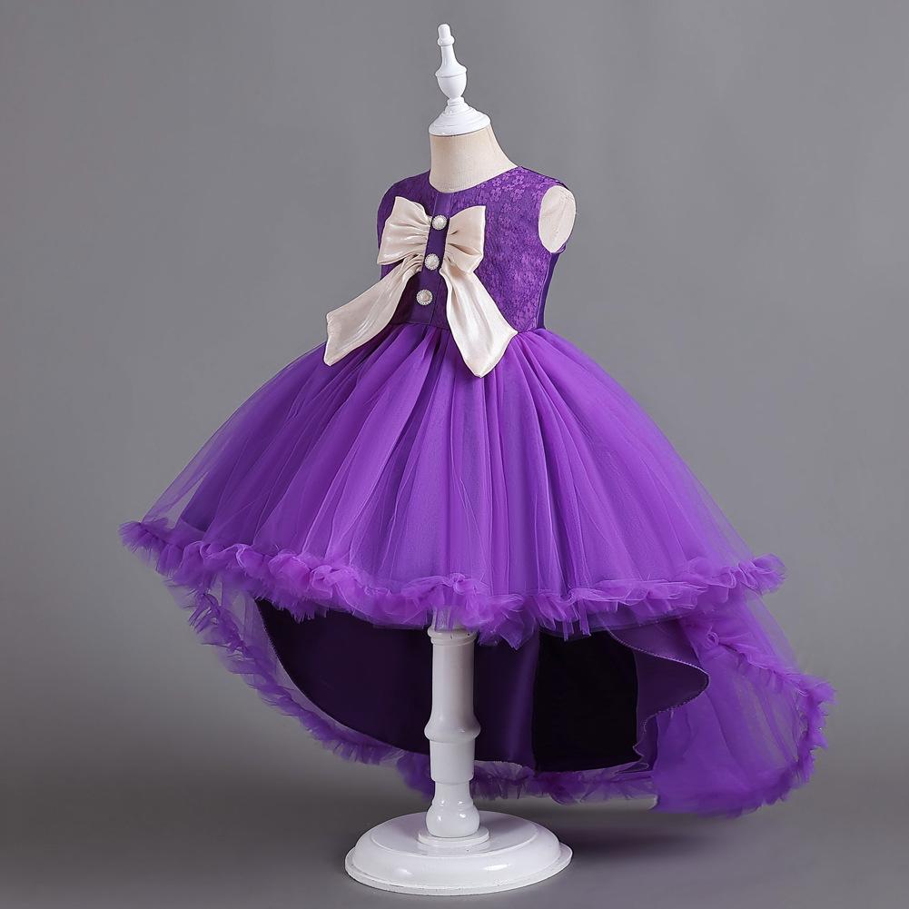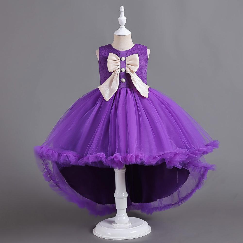 Roxo meninas vestido longo piano infantil passarela roupas de desempenho flor menina de manga curta princesa tutu saia atacado 630