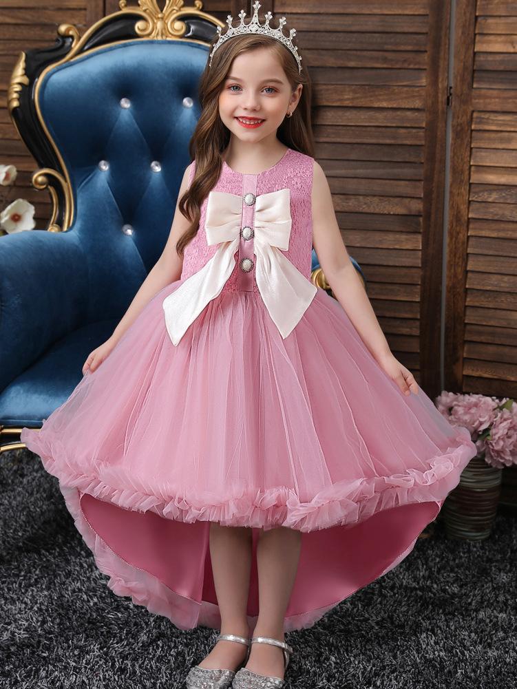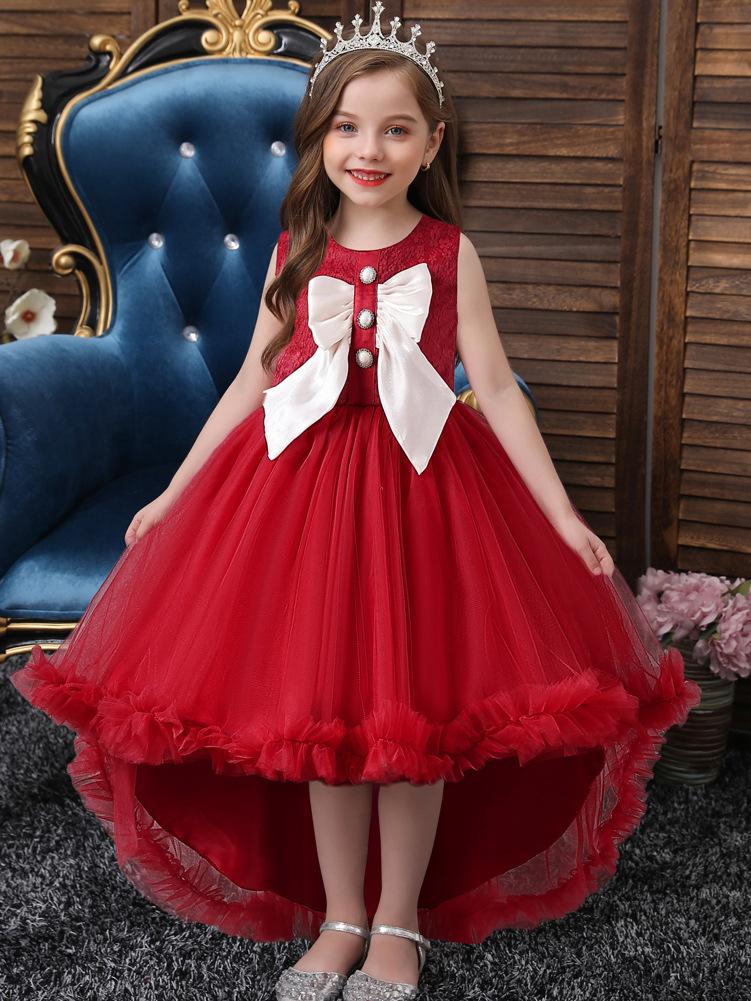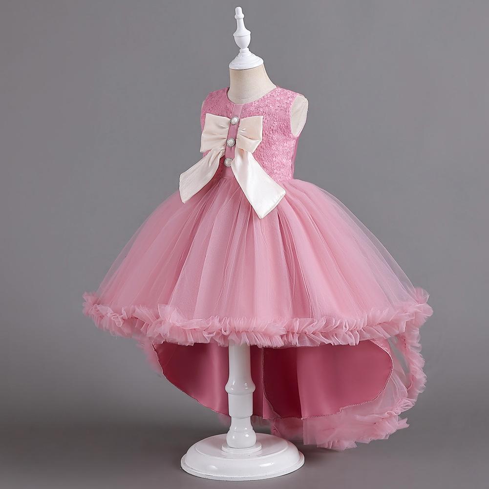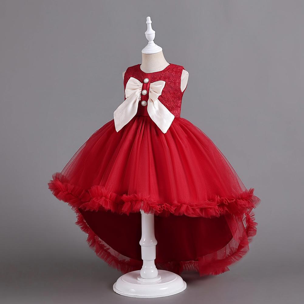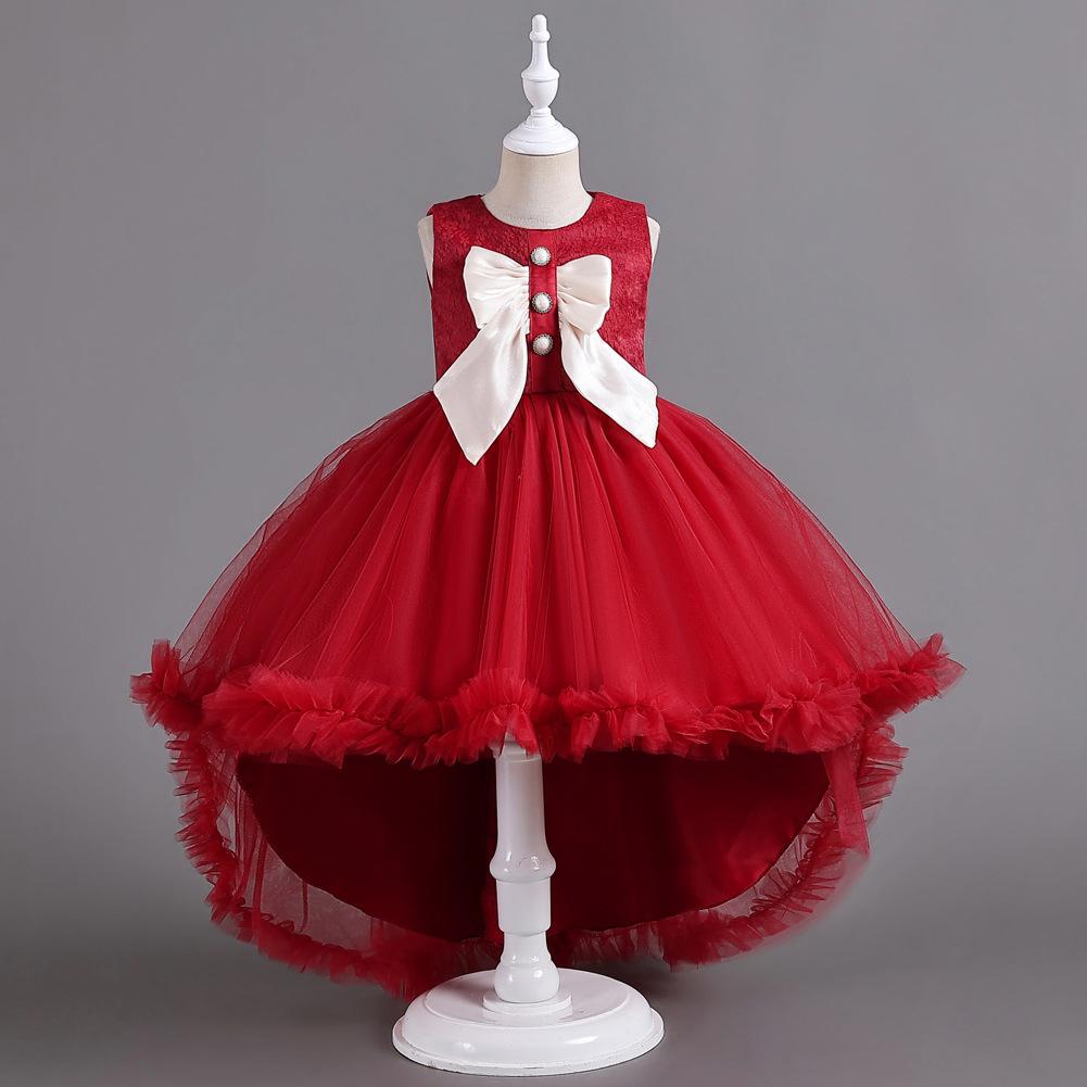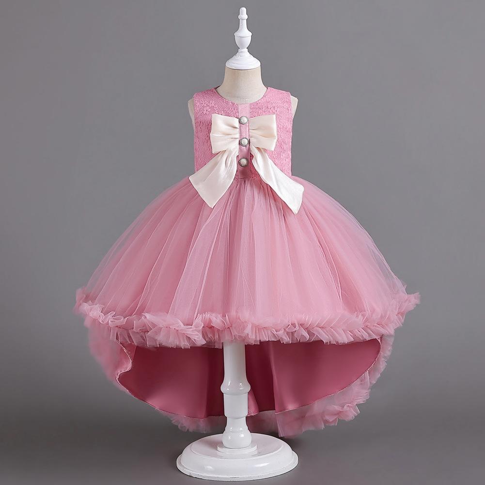 Novo vestido de princesa para crianças, vestido de casamento, saia tutu, cauda de renda, bordado, piano, fantasia de performance de natal, atacado