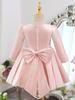 Vestido infantil para banquete de um ano de idade rosa arco vestido de princesa menina manga comprida piano desempenho doce traje