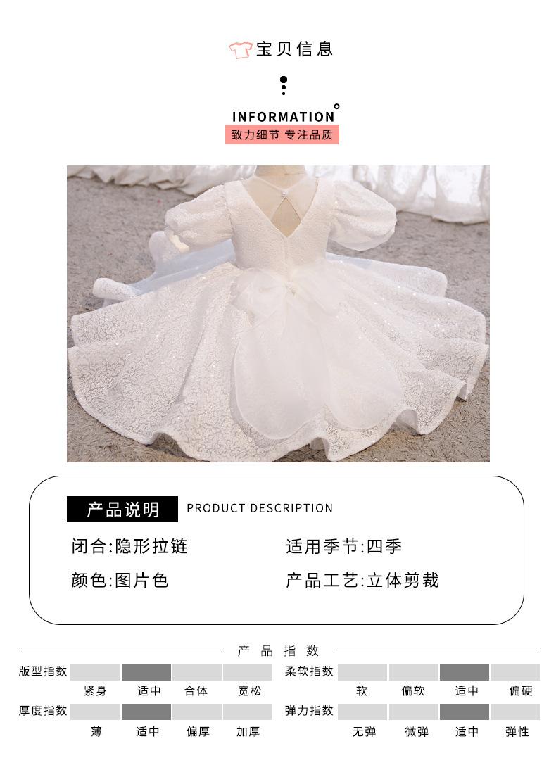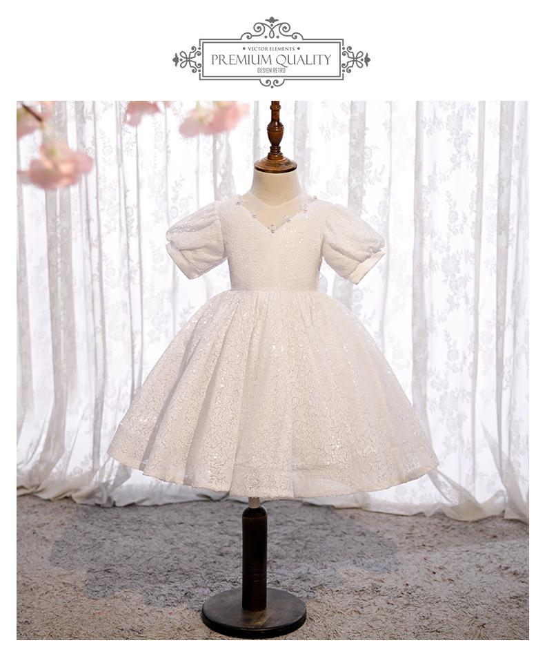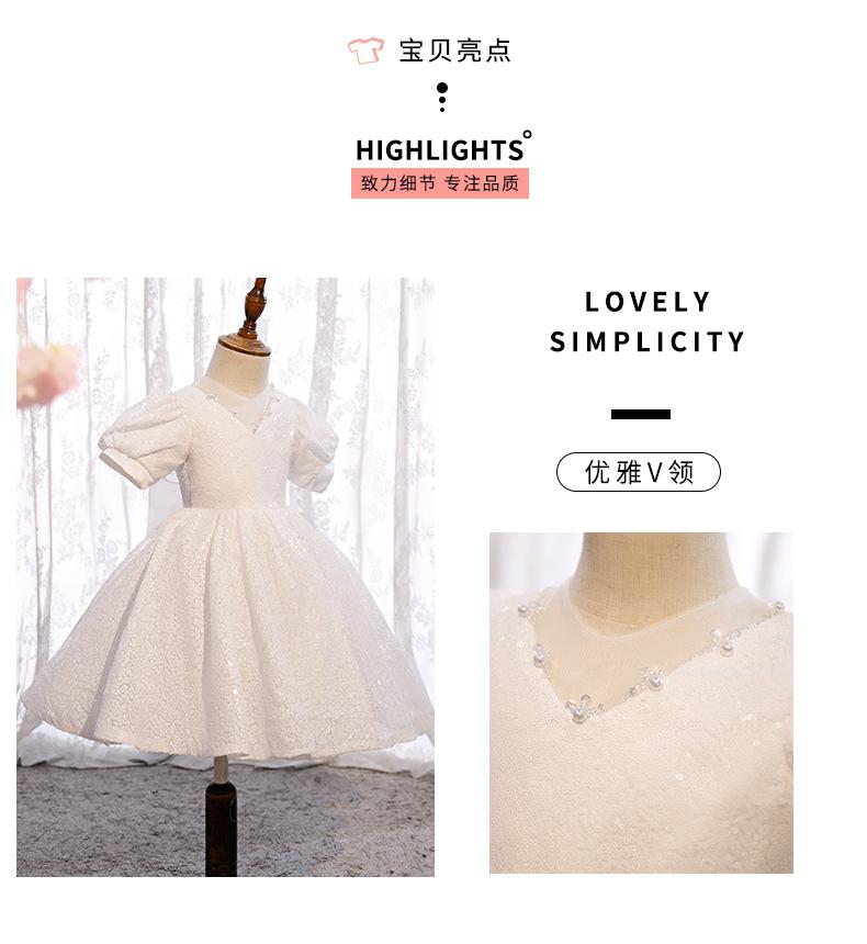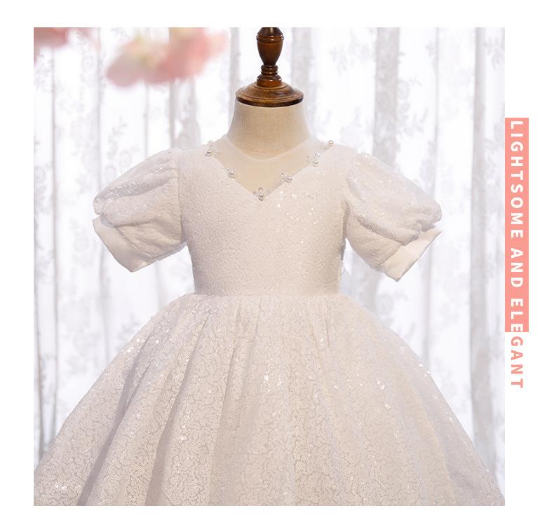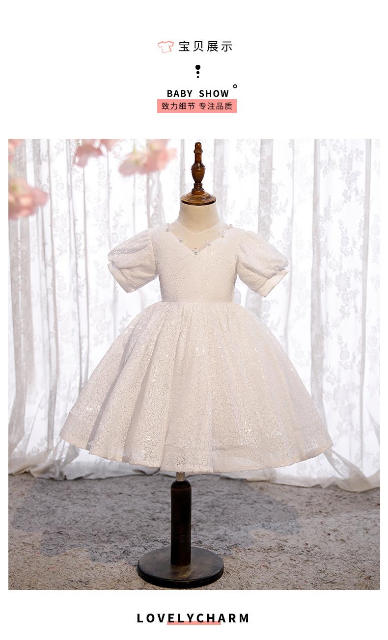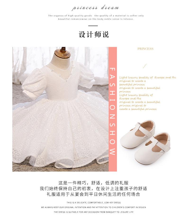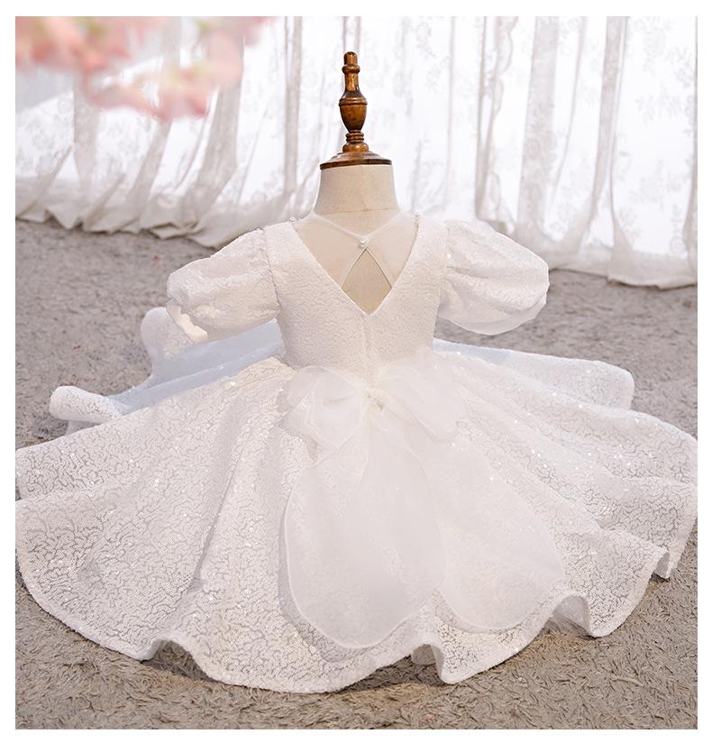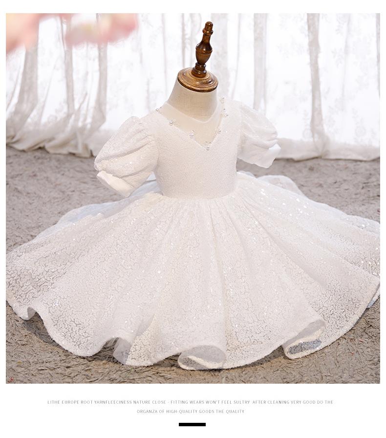 Vestido de princesa infantil com lantejoulas brancas, vestido de bebê de um ano, vestido de aniversário de menina, vestido de princesa