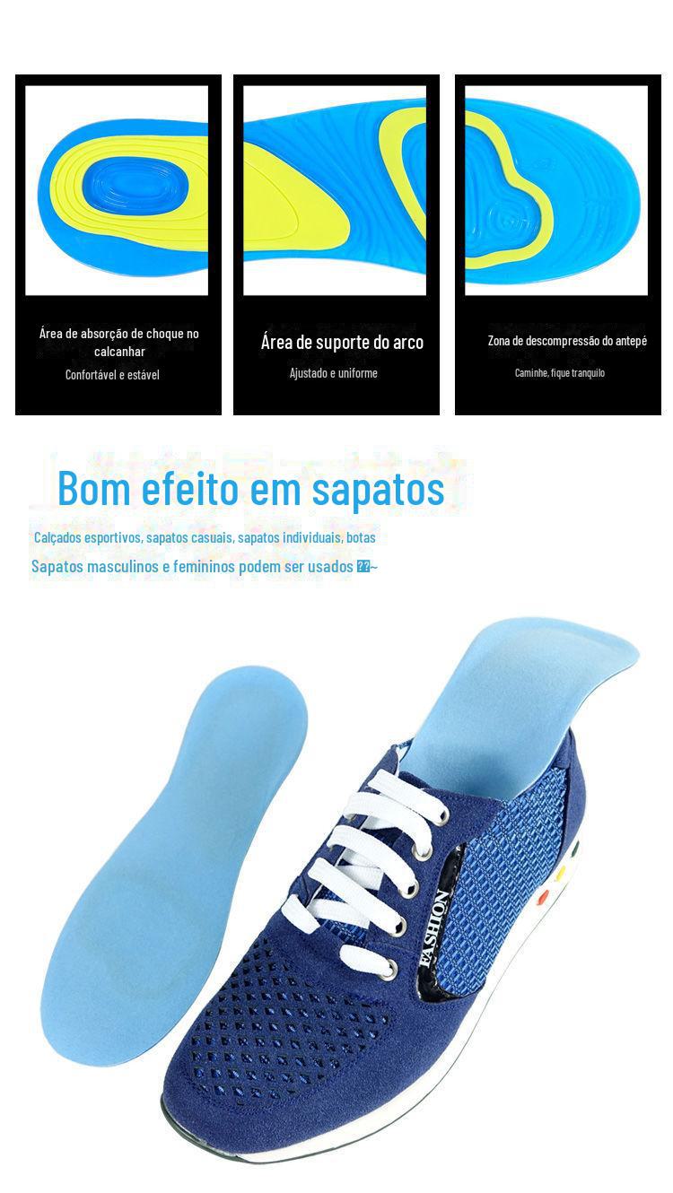 Palmilhas esportivas de silicone elásticas espessas com absorção de choque para todas as estações, corrida geral, antiderrapante, antidor e absorvente de suor, palmilhas de treinamento militar respiráveis
