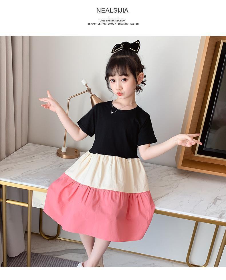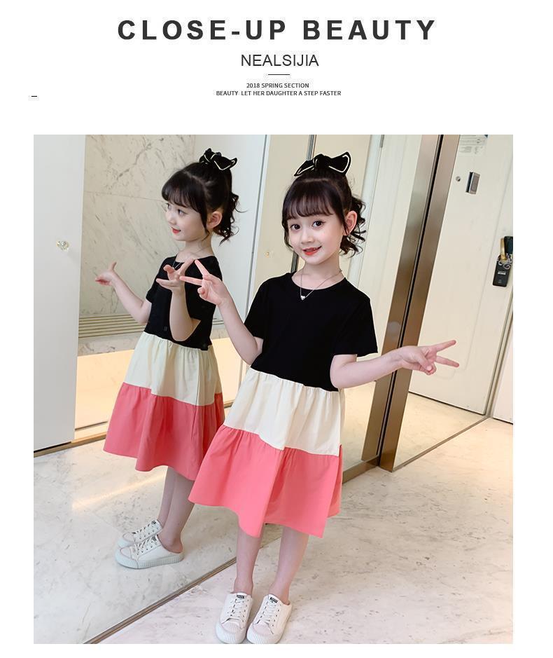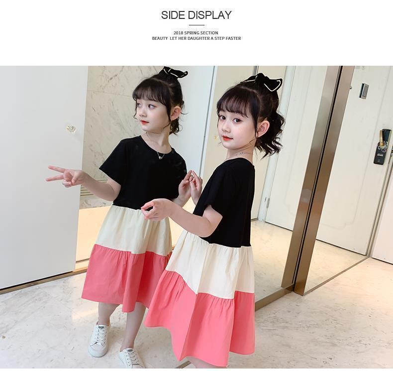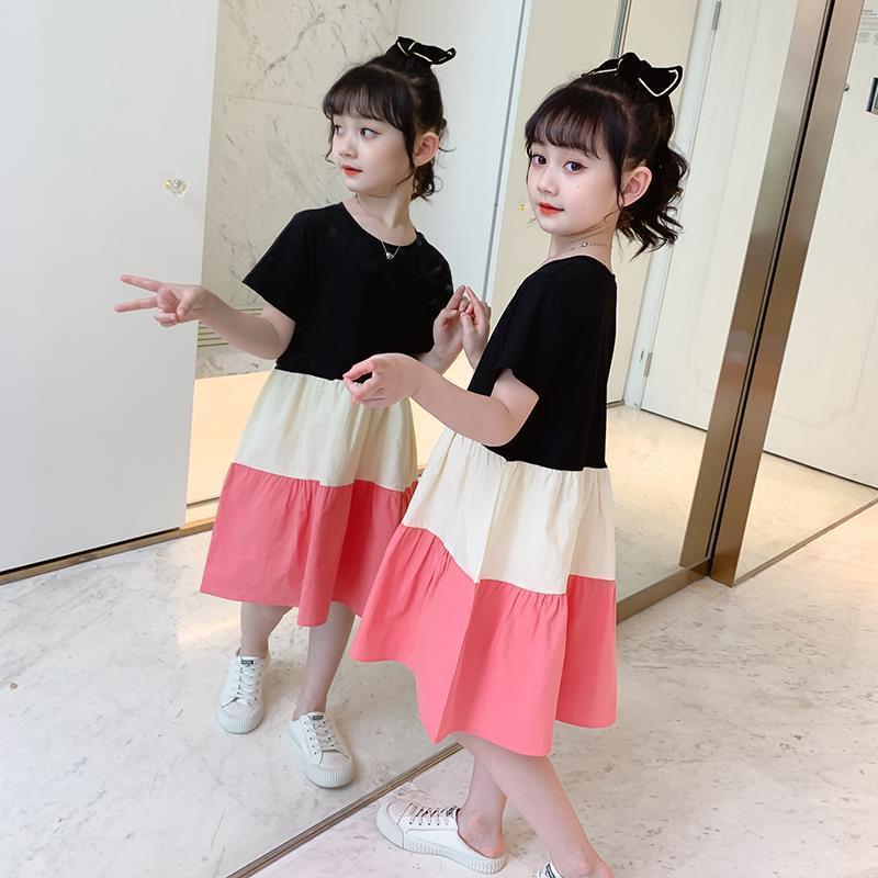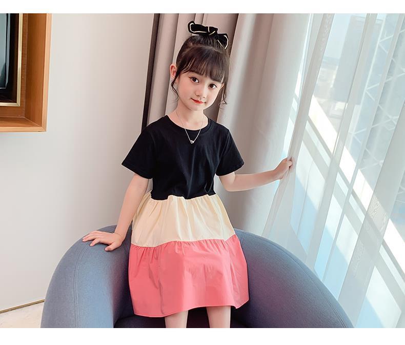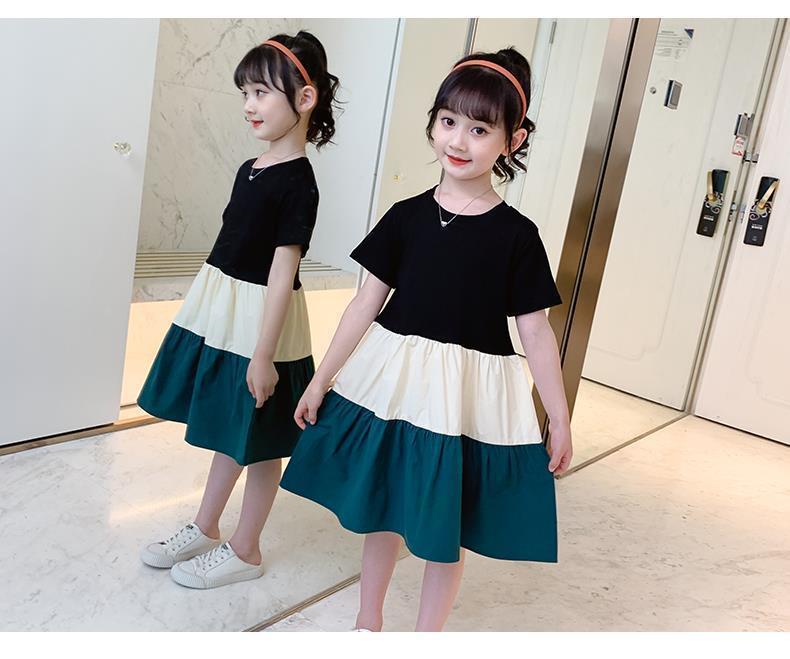 Vestido de Menina 2024 Novo Verão Saia Emendada Vestido de Verão Infantil Grande Moda Fada Manga Curta Vestido de Princesa para Meninas Moderno