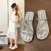 Sandálias de dedo do pé casuais da moda feminina 2024 verão novo sapato feminino de salto baixo para todos os jogos