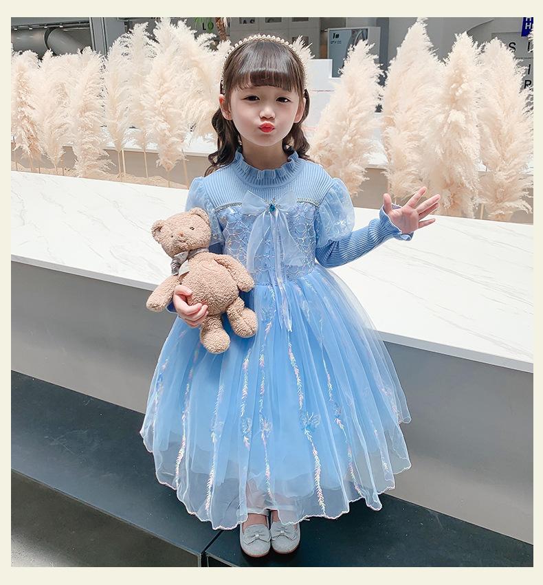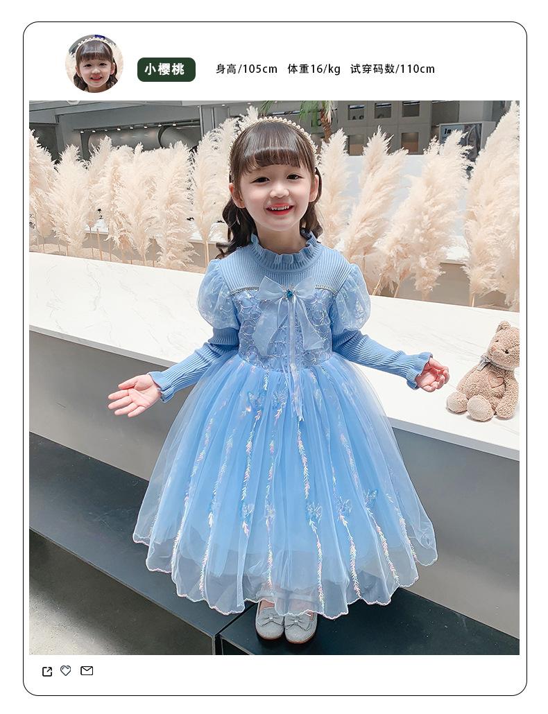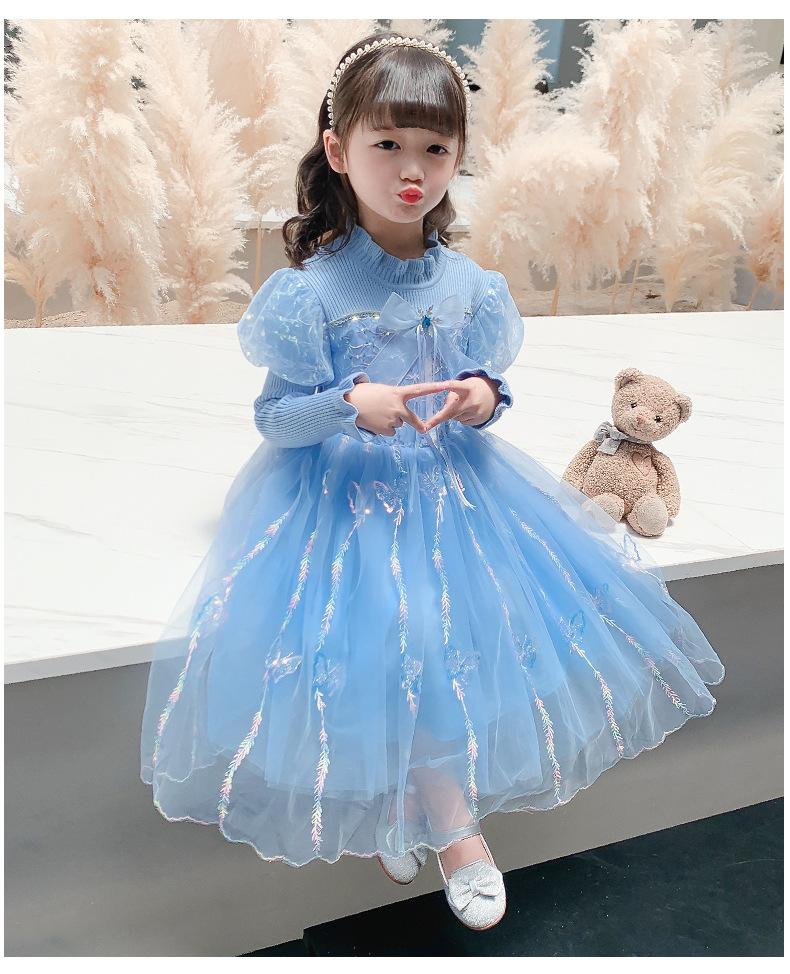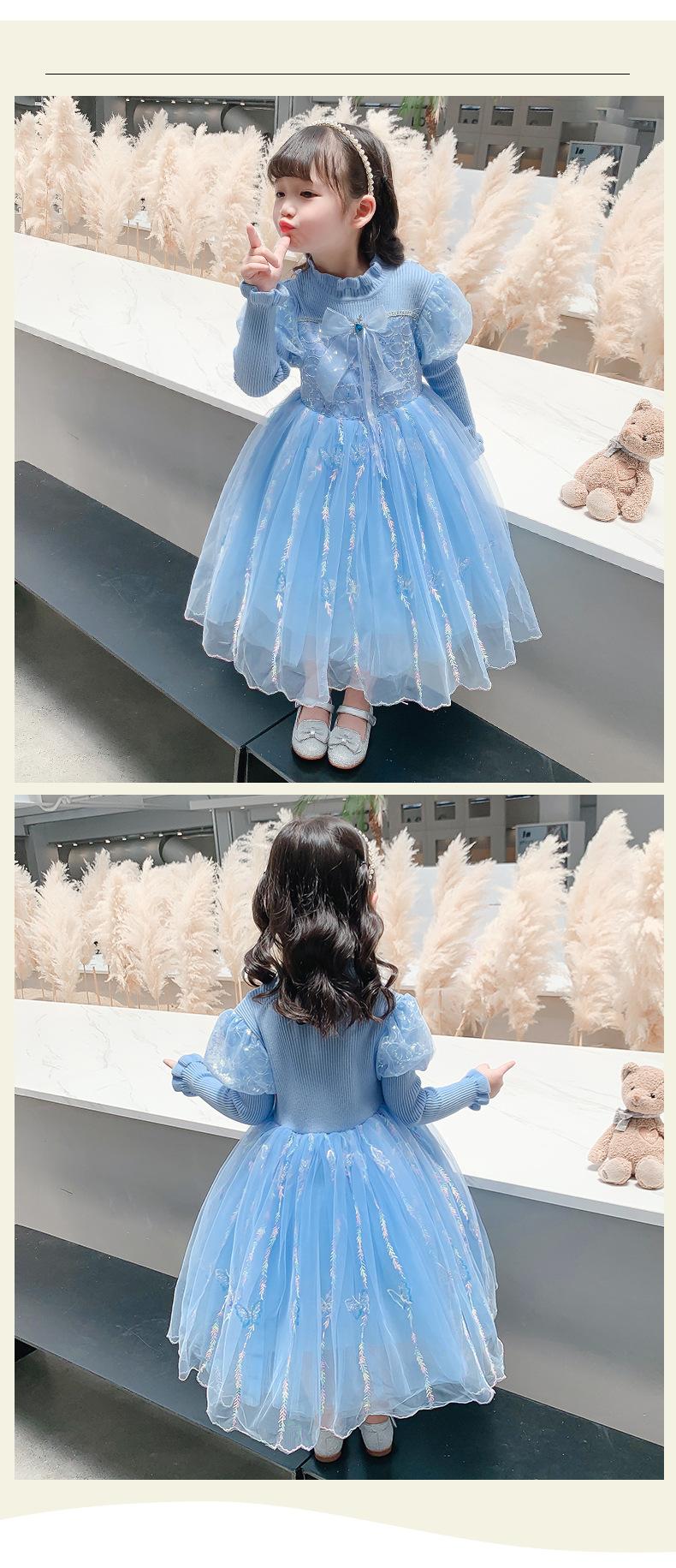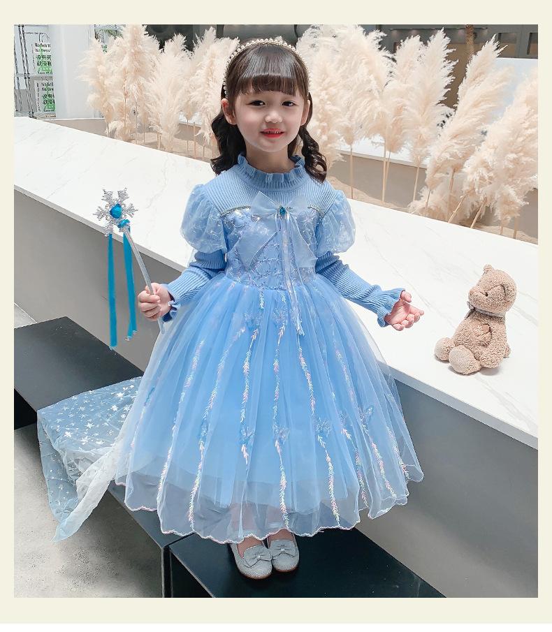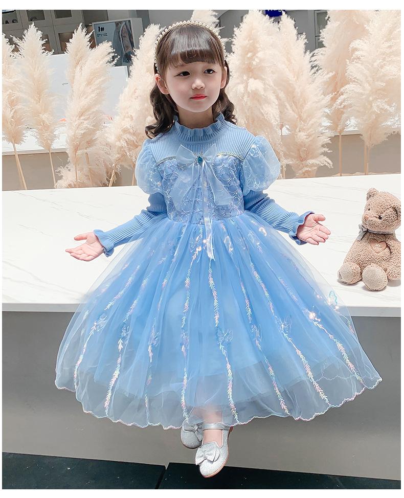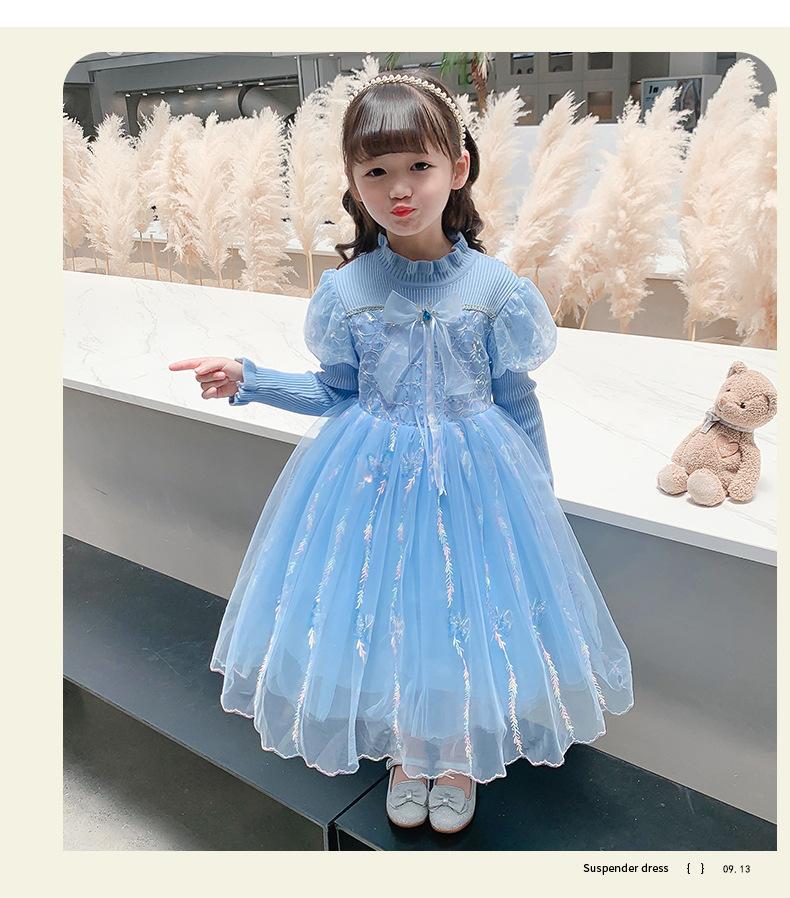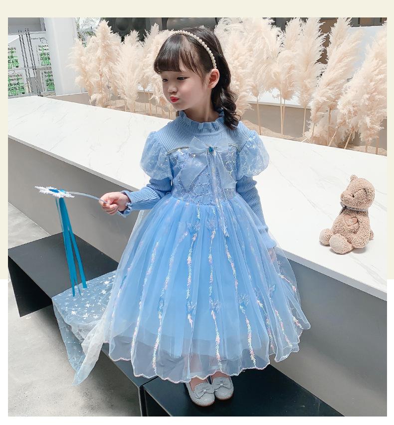 Meninas Outono e Inverno 2025 Novo Vestido Infantil da Moda Vestido Infantil de Princesa Elsa Suéter de Manga Longa Feminino