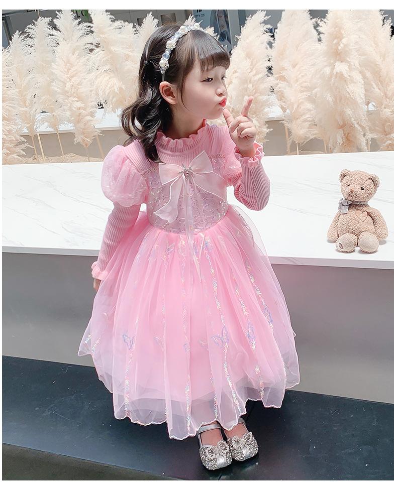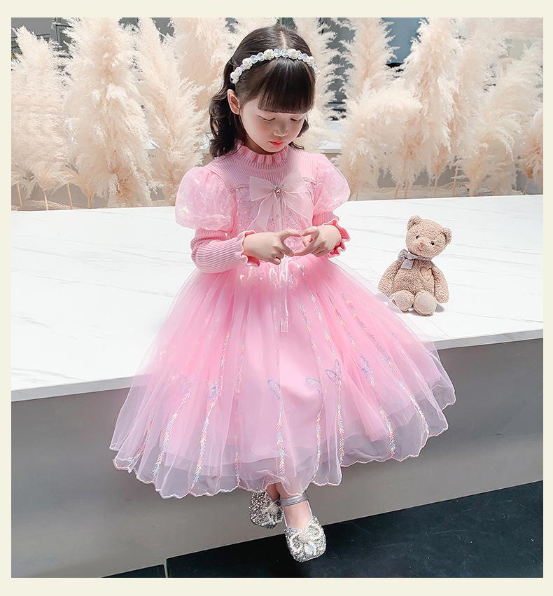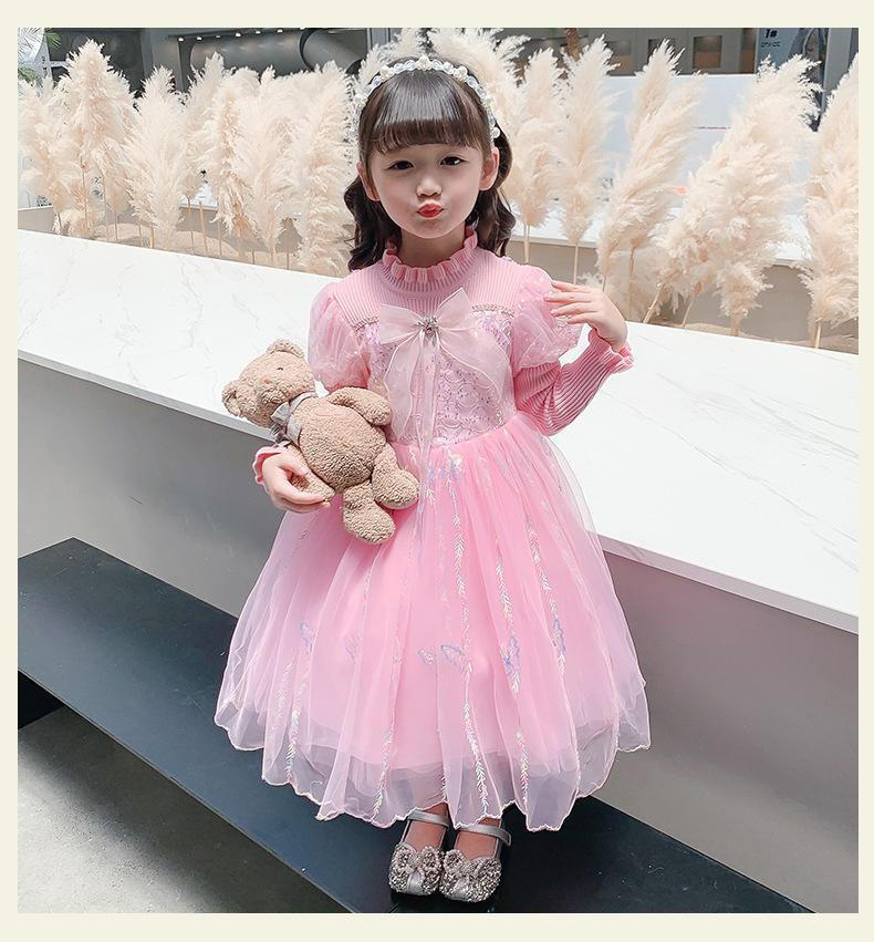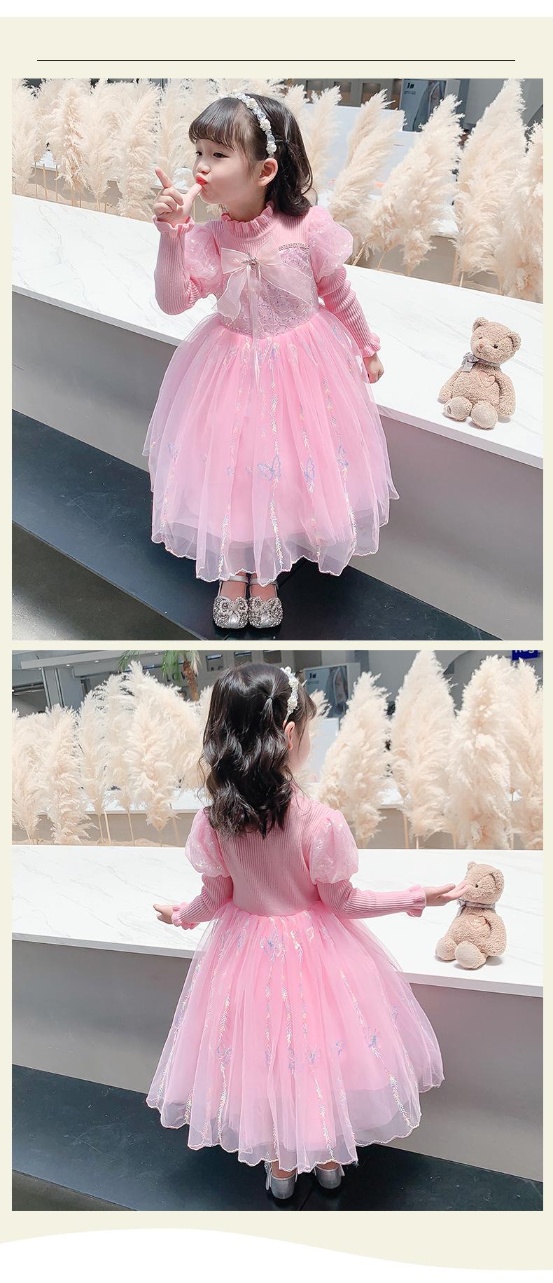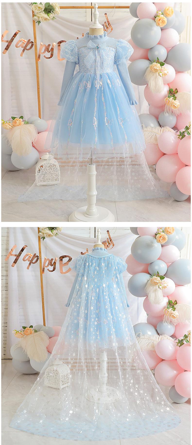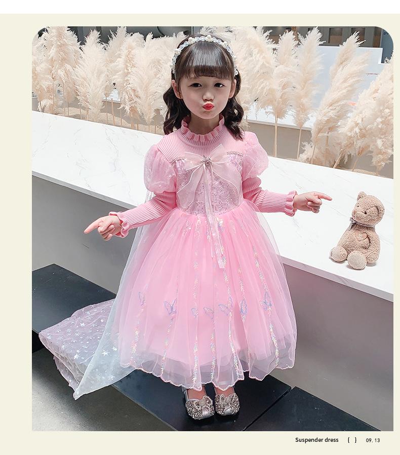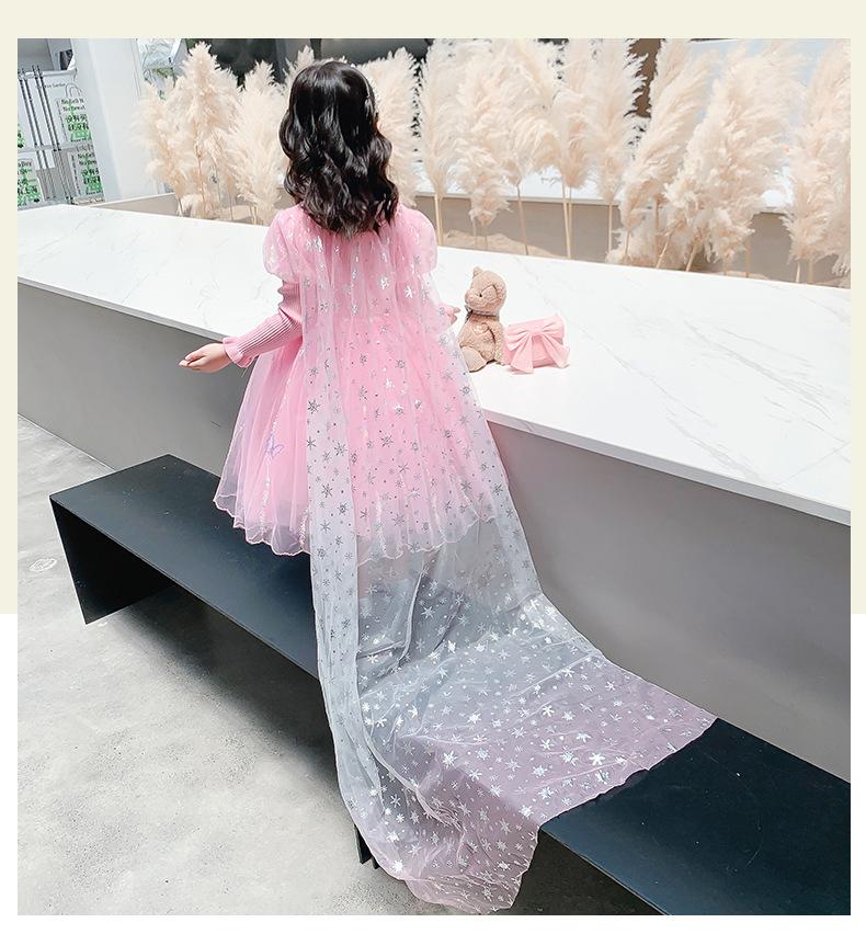Meninas Outono e Inverno 2025 Novo Vestido Infantil da Moda Vestido Infantil de Princesa Elsa Suéter de Manga Longa Feminino