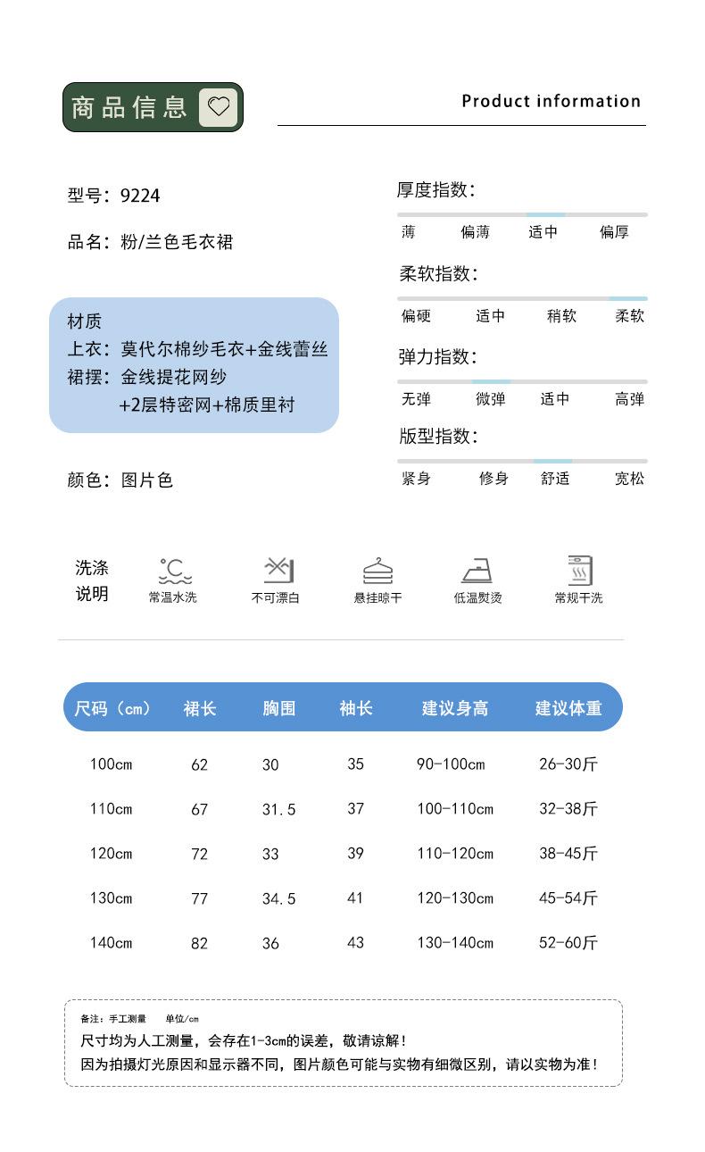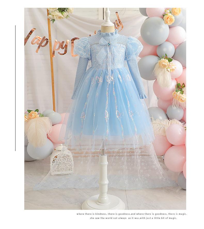 9954# Butterfly Flower Sweater Dress-Blue-Single Skirt, 9954# Blue-Long Cape (1.2 m), 9954# Butterfly Flower D...
