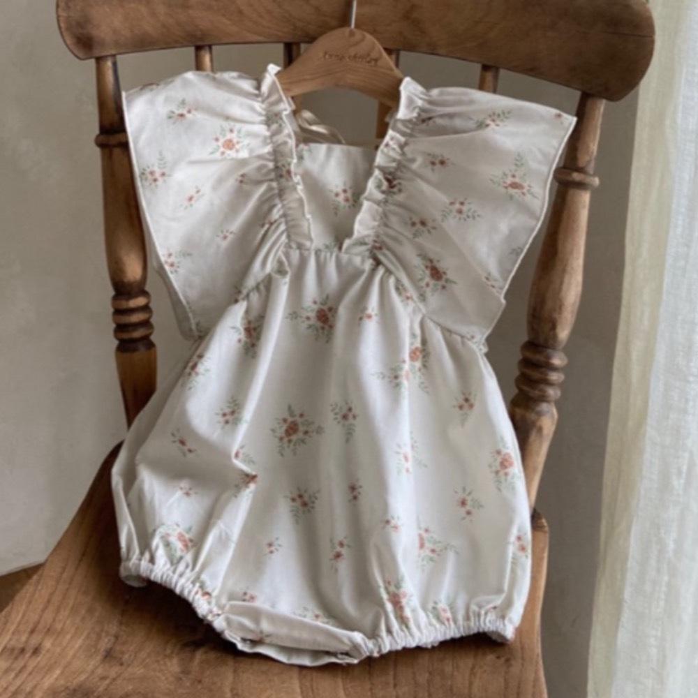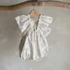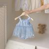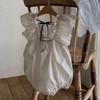 Roupa de Passeio para Bebê Verão Roupa de Bebê Verão 2025 Estilo Coreano Roupa Infantil Macacão de Renda com Gola para Meninas