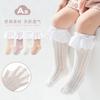 Meias Princesa de Cano Alto Sem Costura de Algodão Fino para Primavera e Verão para Bebês Meninas, Meias Longas de Renda e Malha de Cano Médio para Bebês Meninas