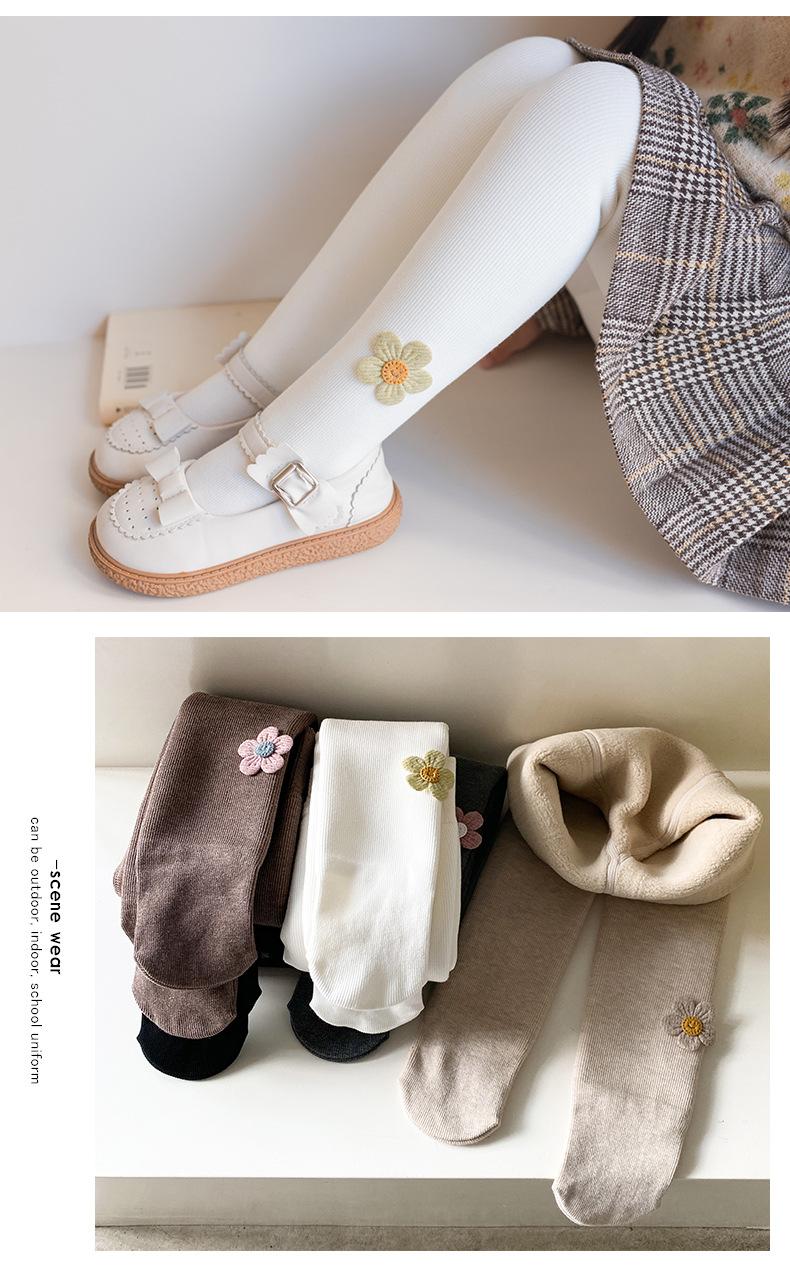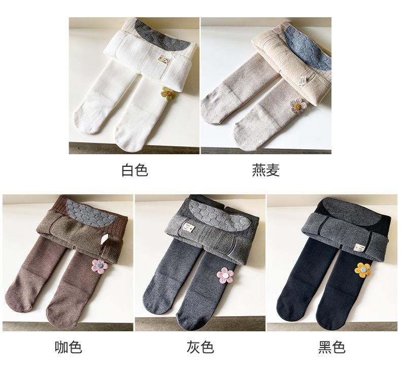 Leggings de bebê engrossadas para meninas 2022 inverno novo algodão Girassol Meia-calça forrada de lã infantil calças quentes