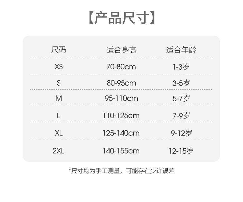 XS size height 70-80 (adjustable crotch), S size height 80-95 (adjustable crotch), M size height 95-110, L siz...
