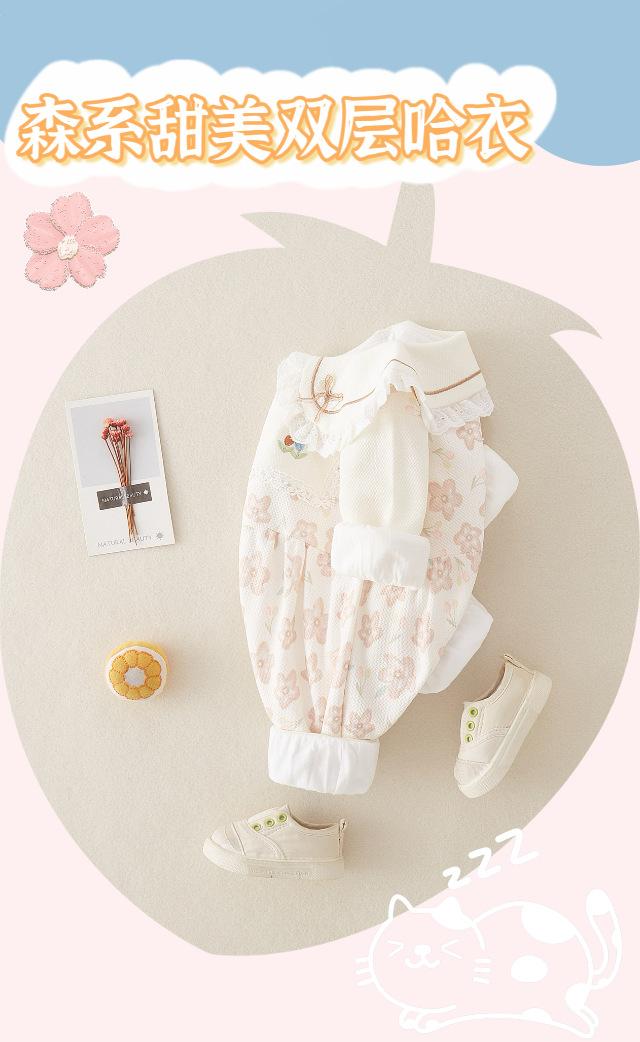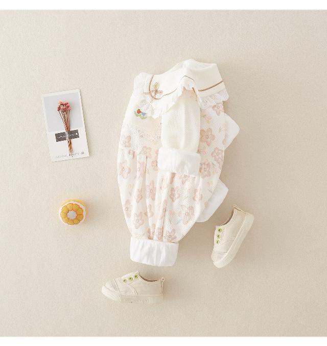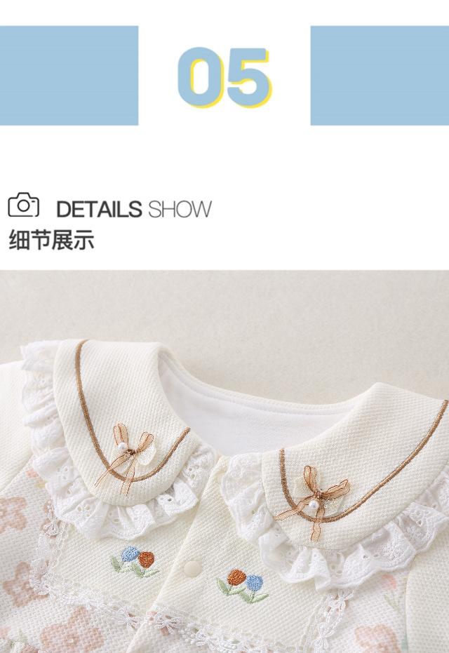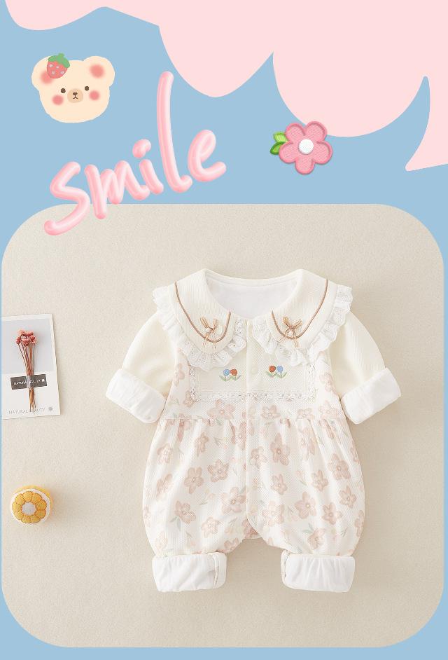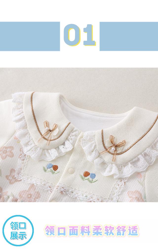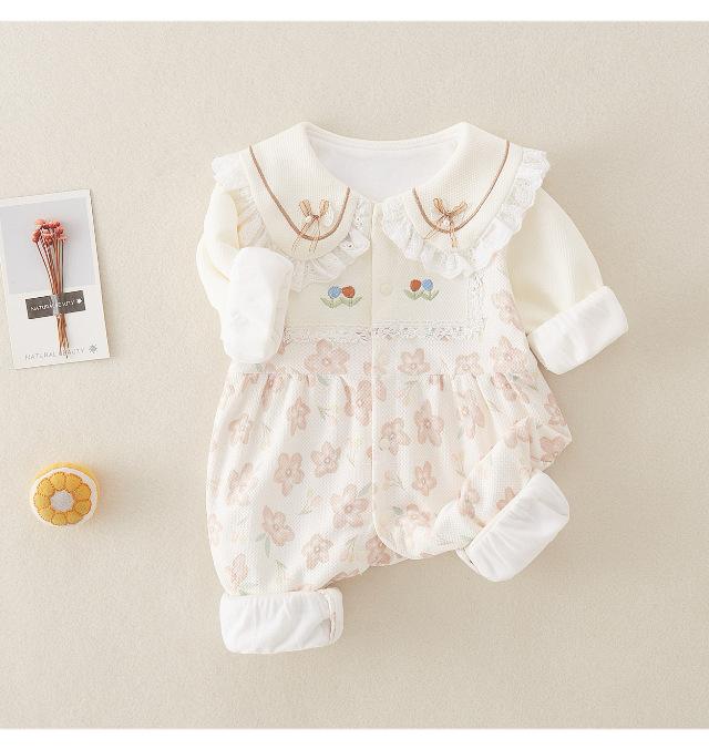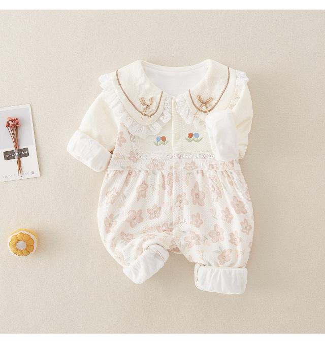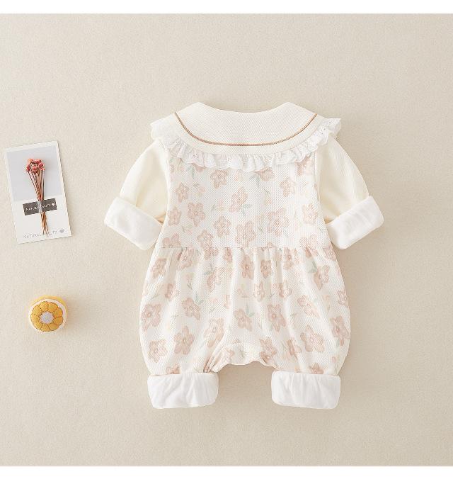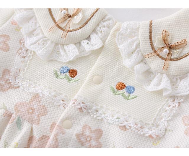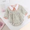 Bebê menina 2024 primavera nova boneca colarinho floral manga comprida uma peça romper Mori doce passeio romper romper
