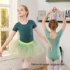 Roupas de treinamento de dança infantil de verão para meninas, roupas de ginástica de fio de manga curta, macacão de balé infantil com virilha aberta