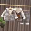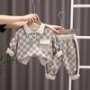 2022 Outono e Inverno Novos Meninos Vestido Conjunto Bonito Xadrez Infantil Pequeno Terno Stylike Bebê Um Ano De Idade Vestido