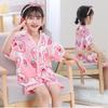 2024 Novo verão das meninas de manga curta pijamas de seda gelo meninas bebê doce cartoon fino homewear terno
