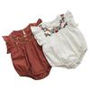 Roupas recém-nascidas verão bordado manga voadora macacão masculino e feminino baby romper triângulo romper bebê Verão Algodão