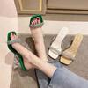 Verão europeu e americano Comércio exterior plus size de uma palavra pano salto alto chinelos mulheres em forma especial salto grosso transparente moda sandálias ebay