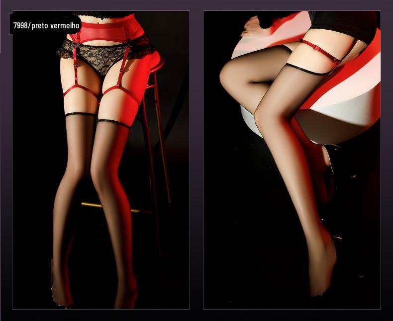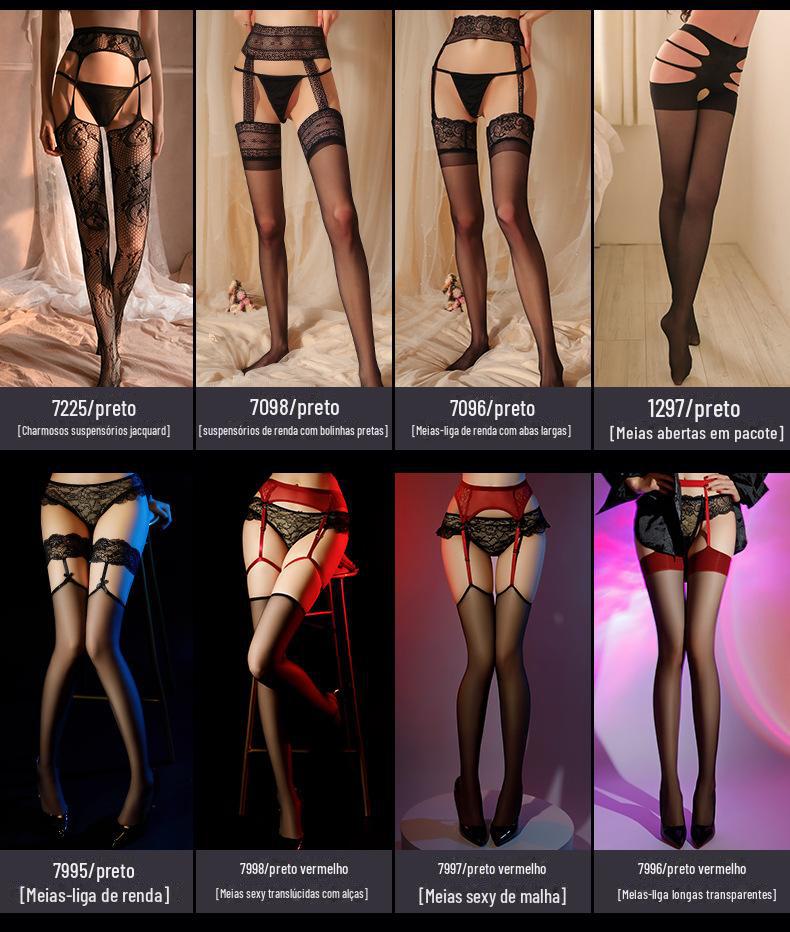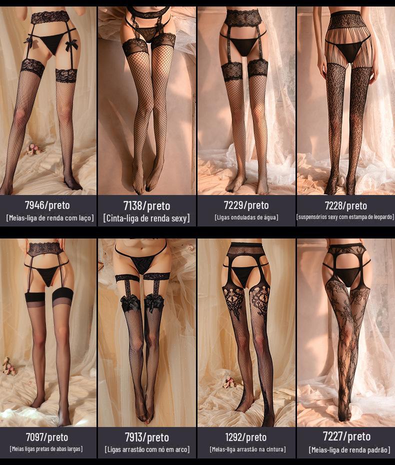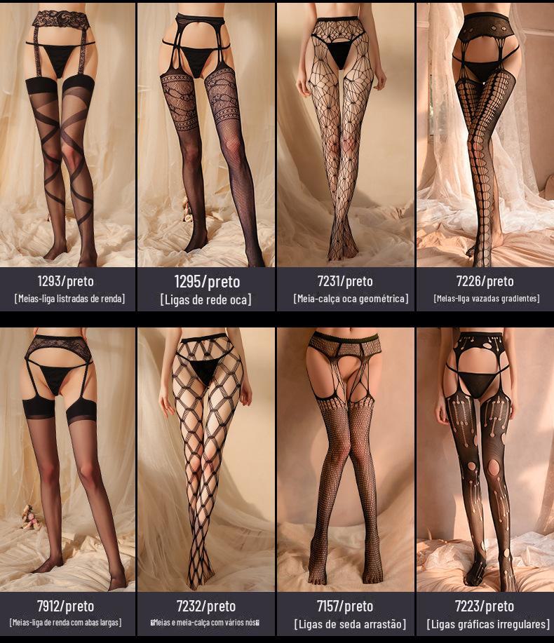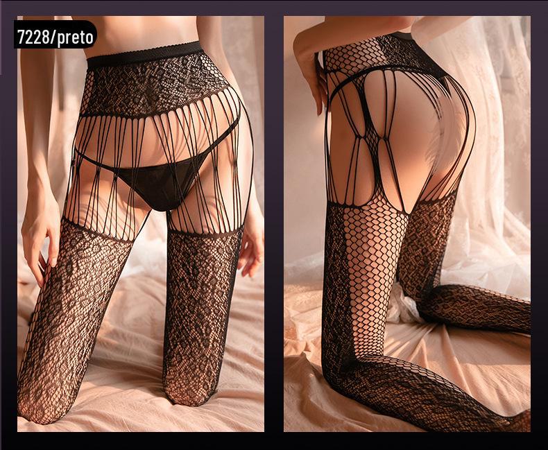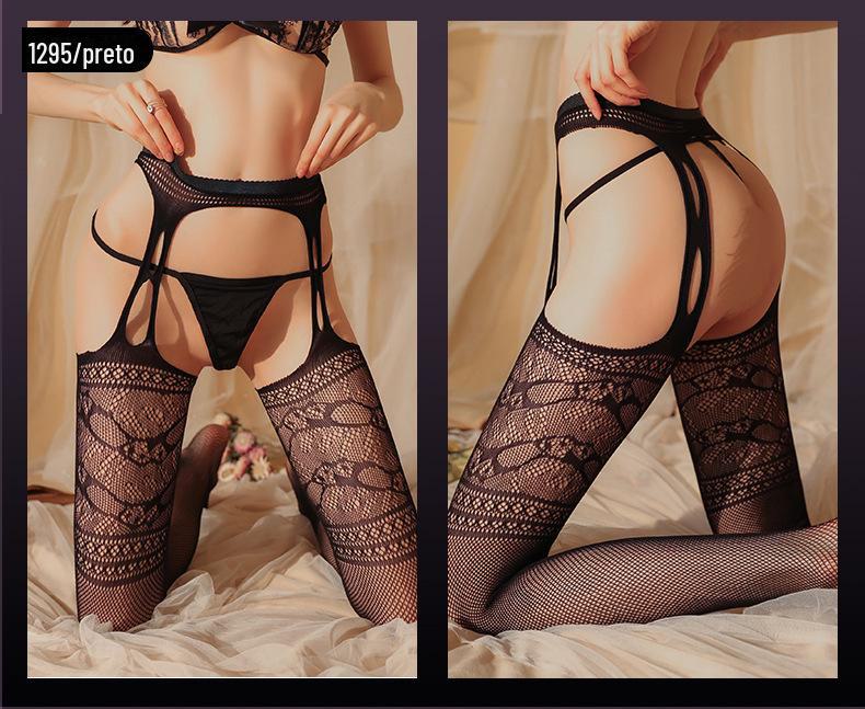 Meias divertidas Manyan, meias sensuais com perspectiva oca e cinta-liga, meias 7157