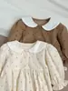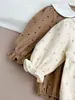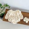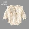 Ins ~ roupas de bebê 2024 primavera novo estilo coreano bebê menina bolinhas pequena bolsa floral peido algodão triângulo macacão macacão