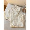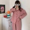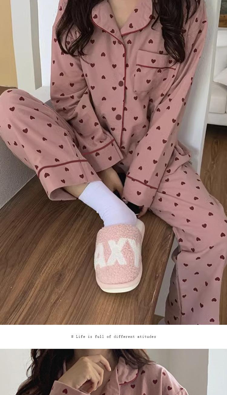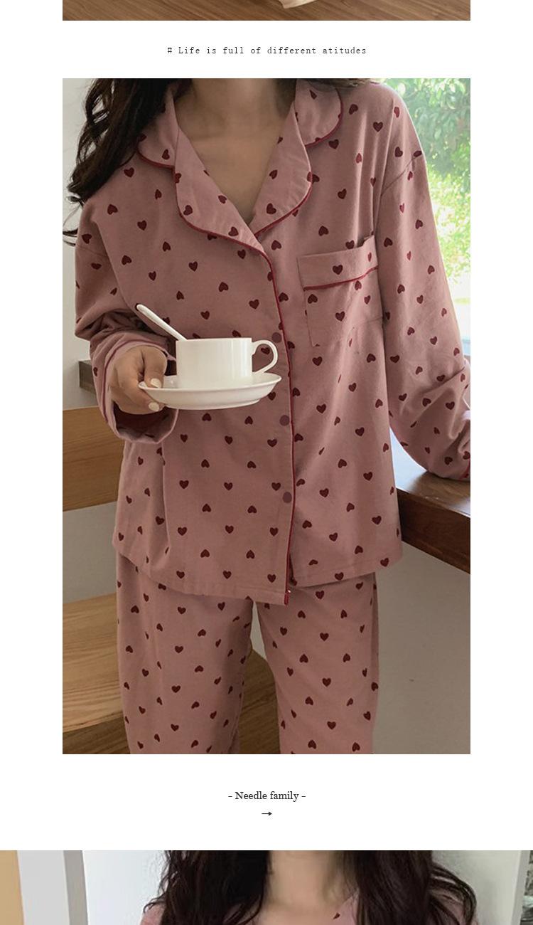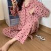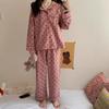 Novo Ins Pijama feminino casual solto, simples, doce, famoso na internet, cardigan de manga comprida, conjunto de duas peças para casa, atacado