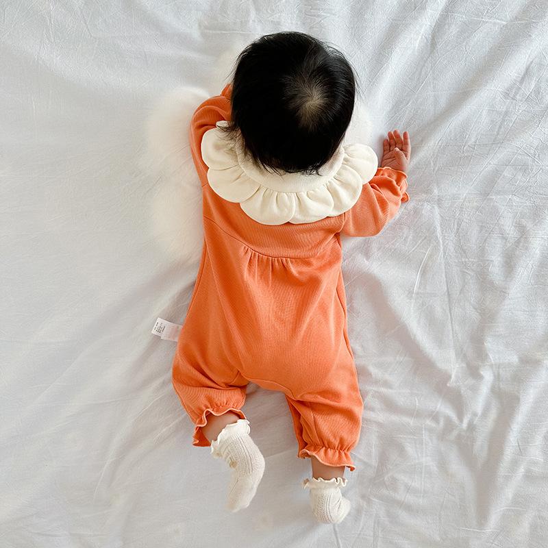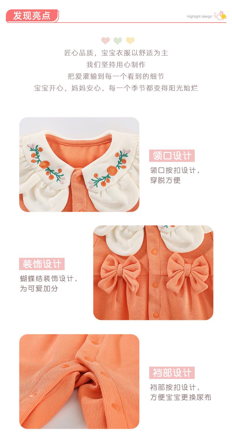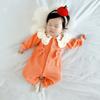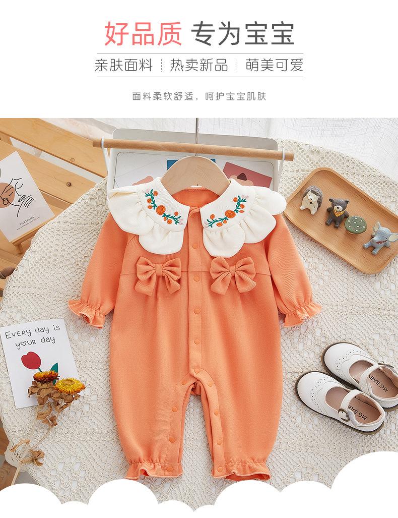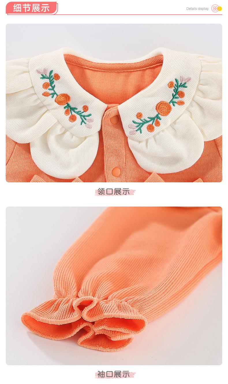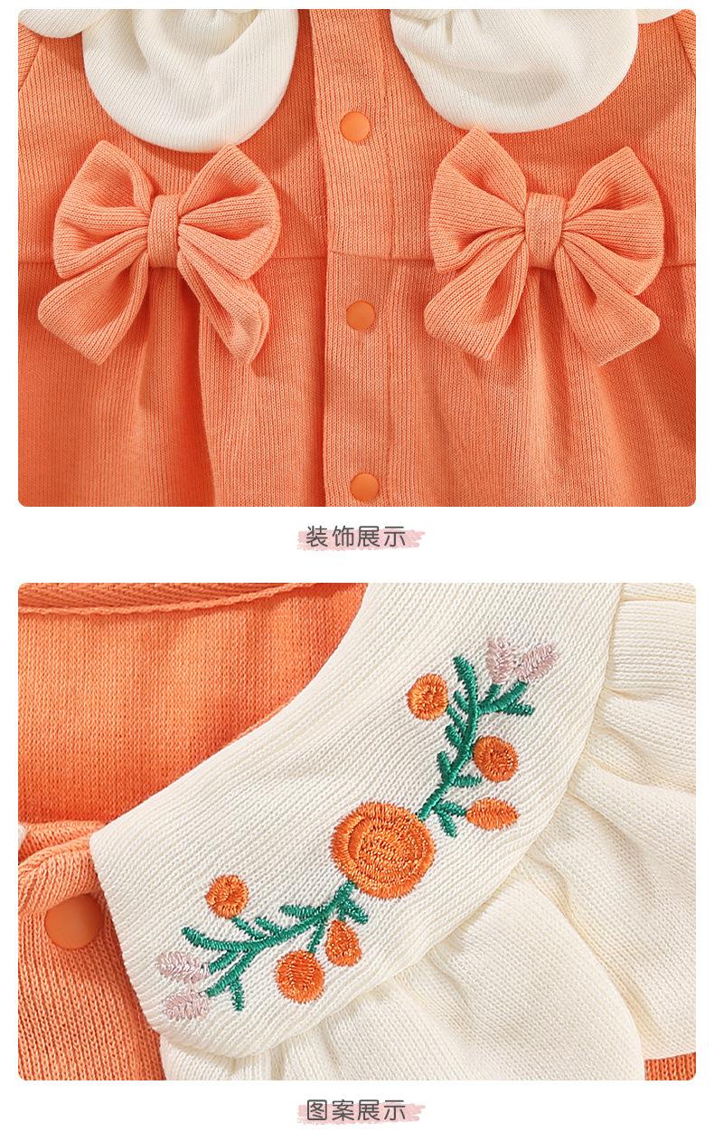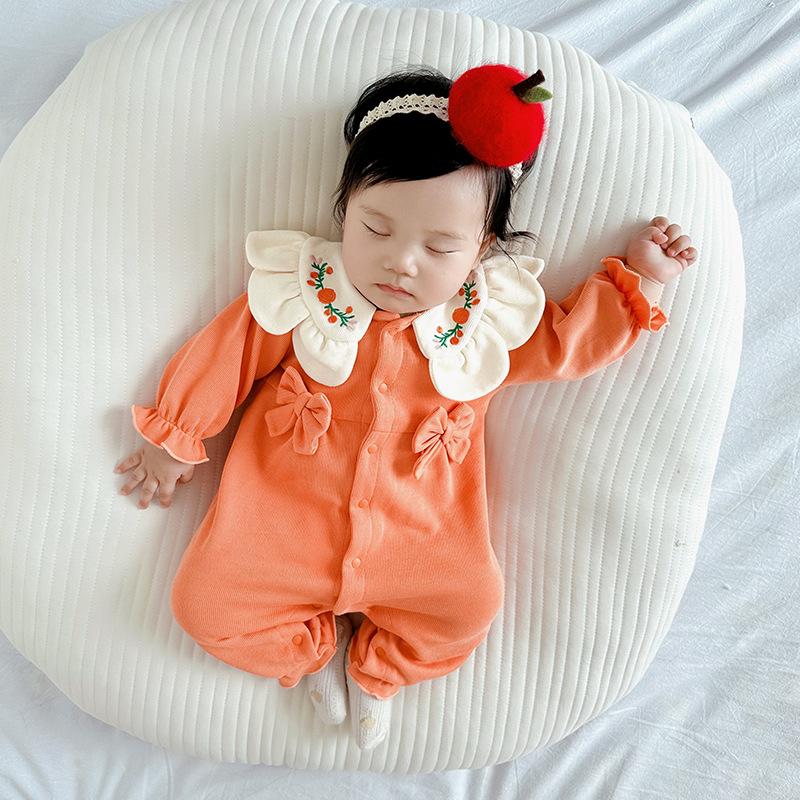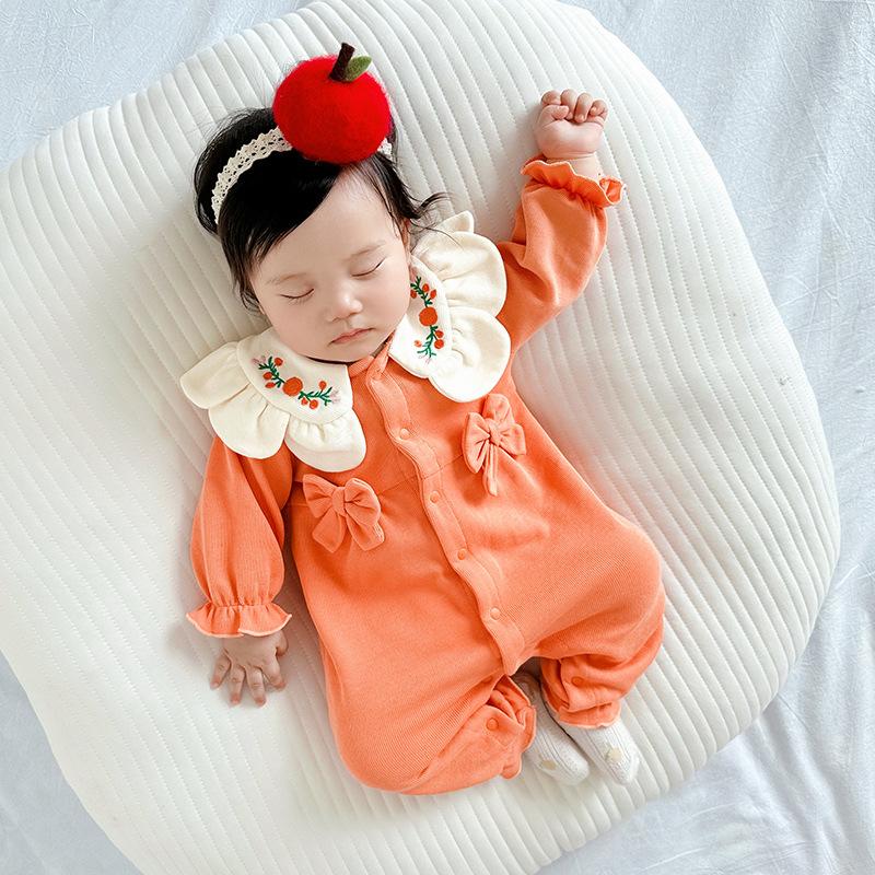 Bebê Macacão Outono Bebê Meninas Roupas Abertura Frontal Fivela de Manga Longa Roupas Recém-Nascidas Bordadas Flor Bebê Roupas de Outono