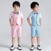 Colete Infantil Manga Curta Terno Fino Verão Novos Meninos Colete de Cor Sólida Rosa Anfitrião Discurso Vestido Coro