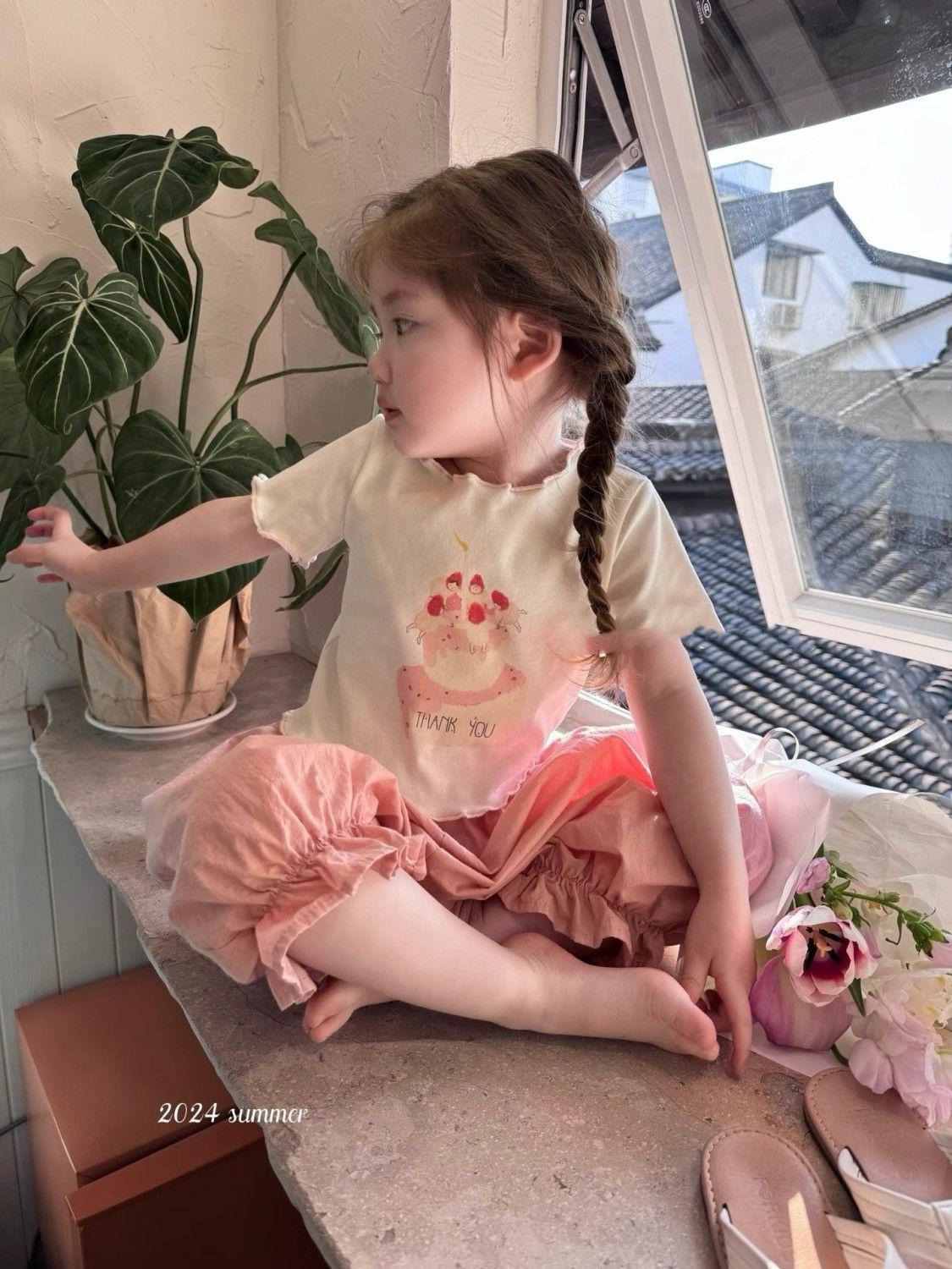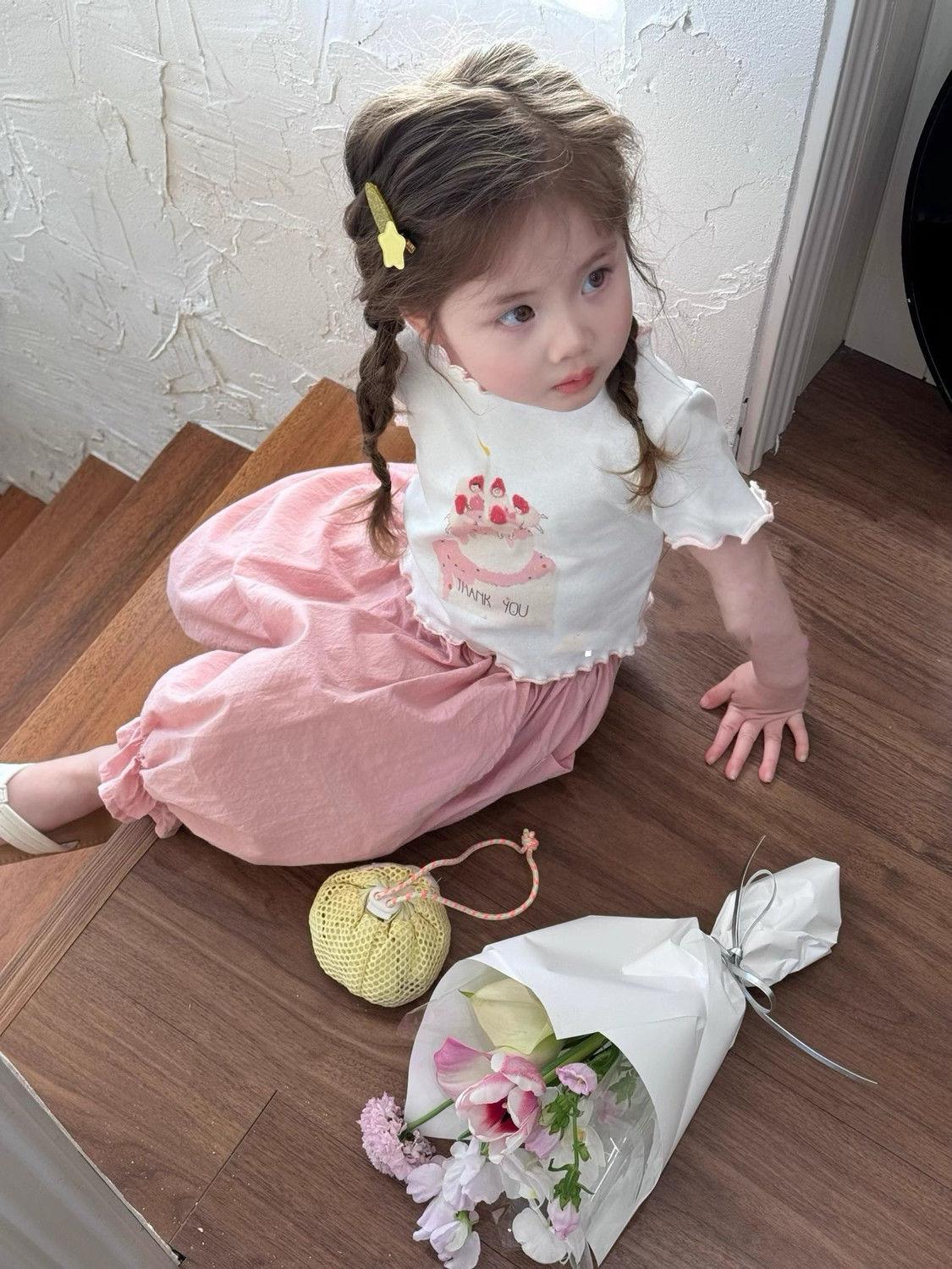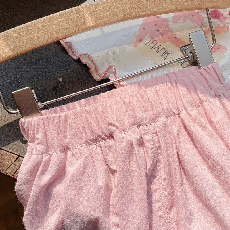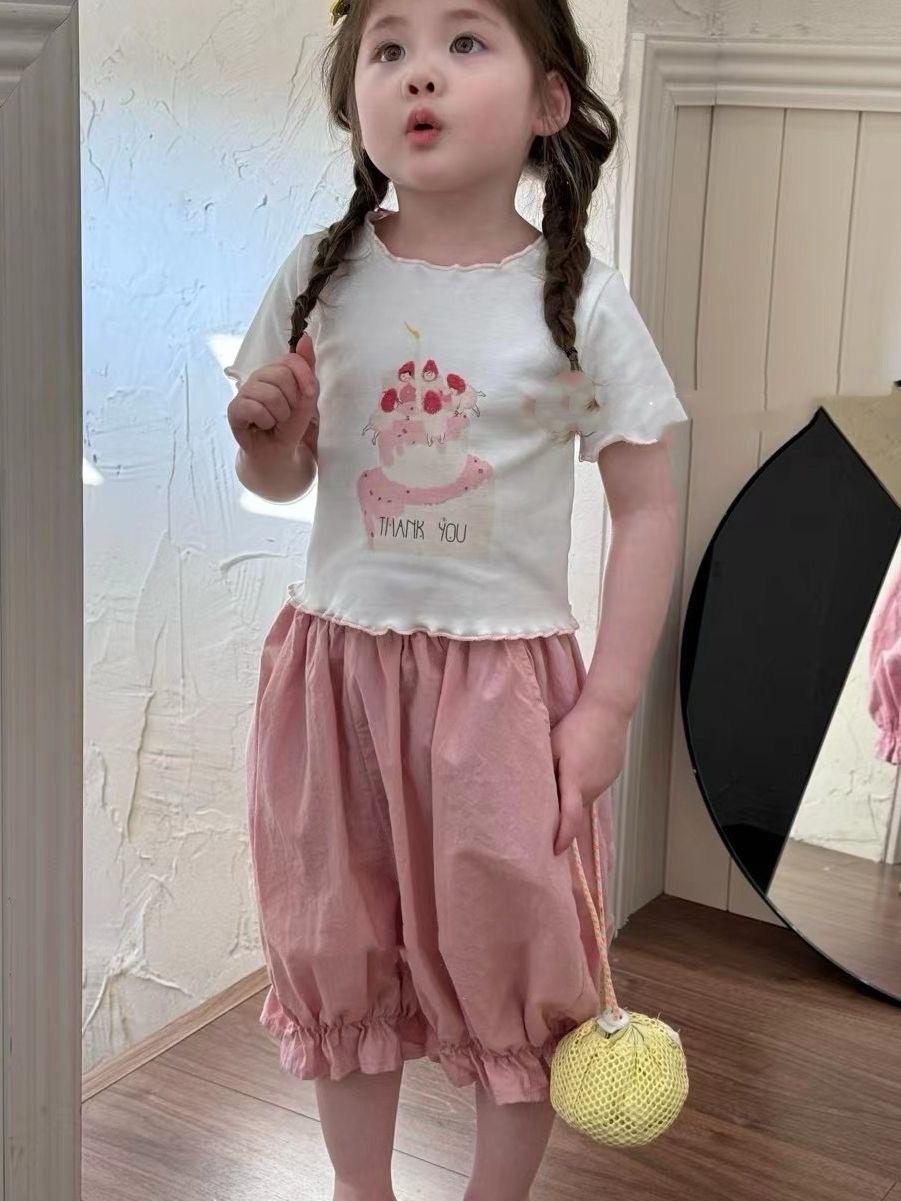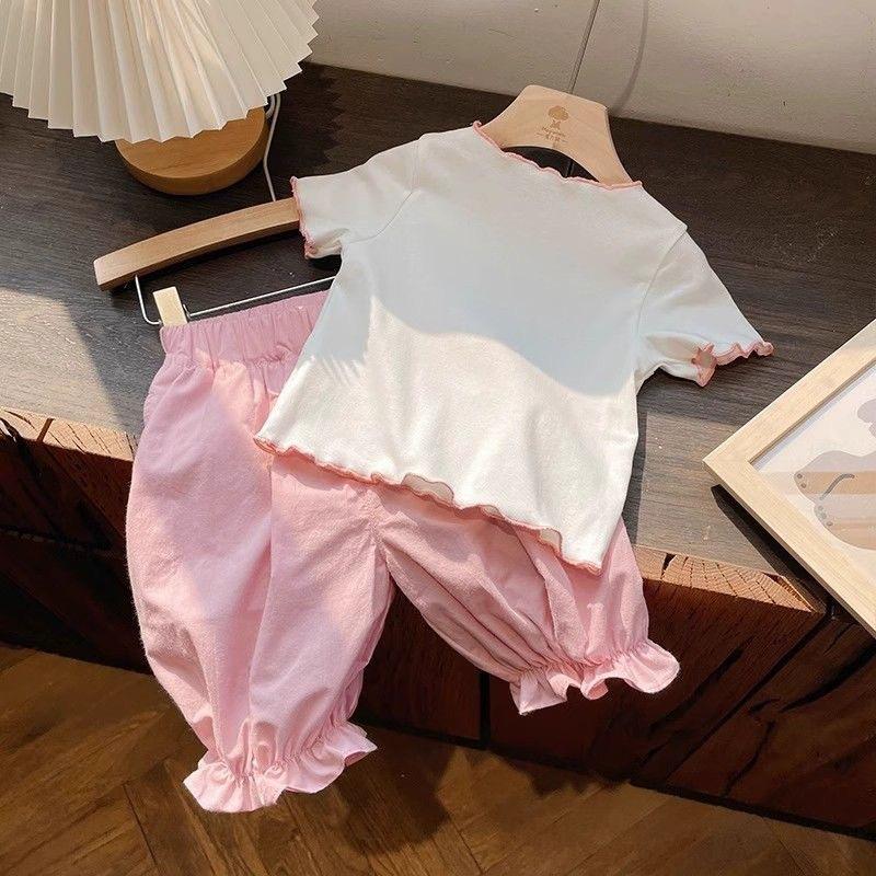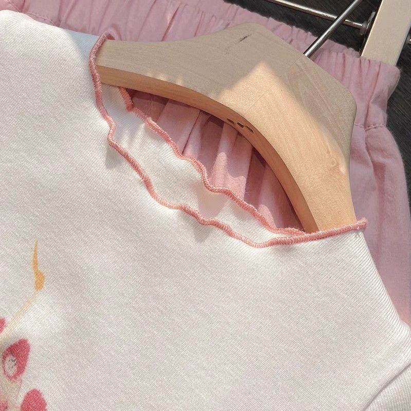 Compre Terno infantil de manga curta estilo ocidental verão 2024 novo desenho animado fofo estampado rosa conjunto de duas peças no atacado no Joom.pro