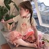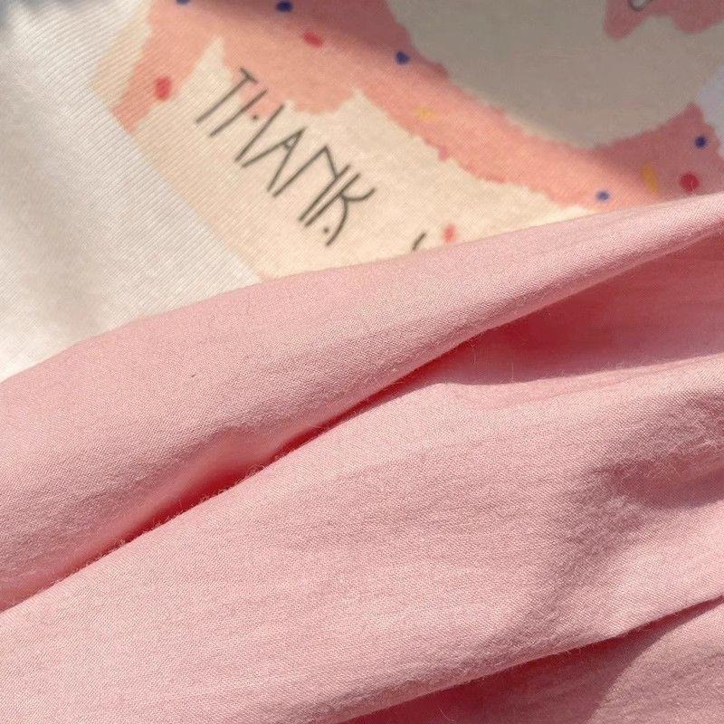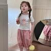 Terno infantil de manga curta estilo ocidental verão 2024 novo desenho animado fofo estampado rosa conjunto de duas peças