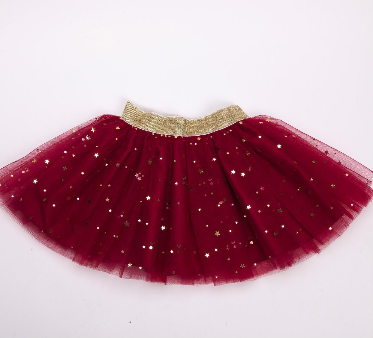 Cross-border Children's Wear Primavera, Verão e Outono Meninas 'Puffy Saia Flash Star Children's Veil Saia Princesa Meio-comprimento Saia de malha