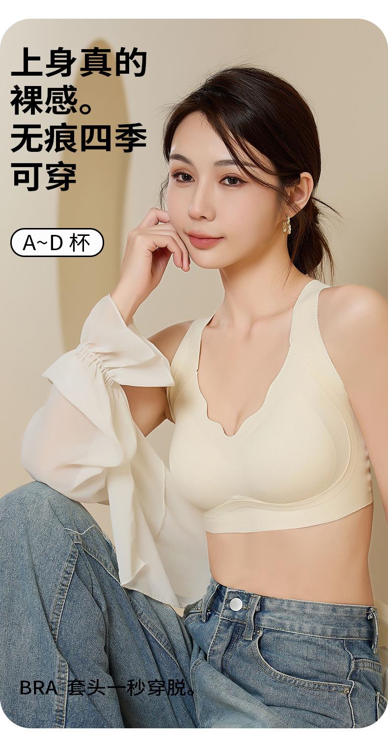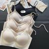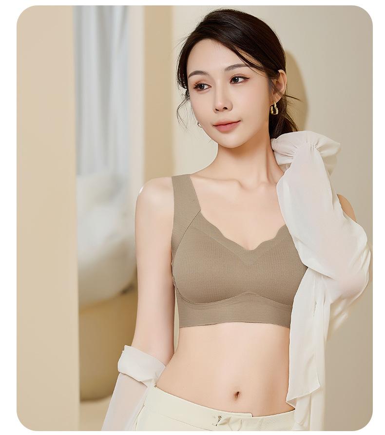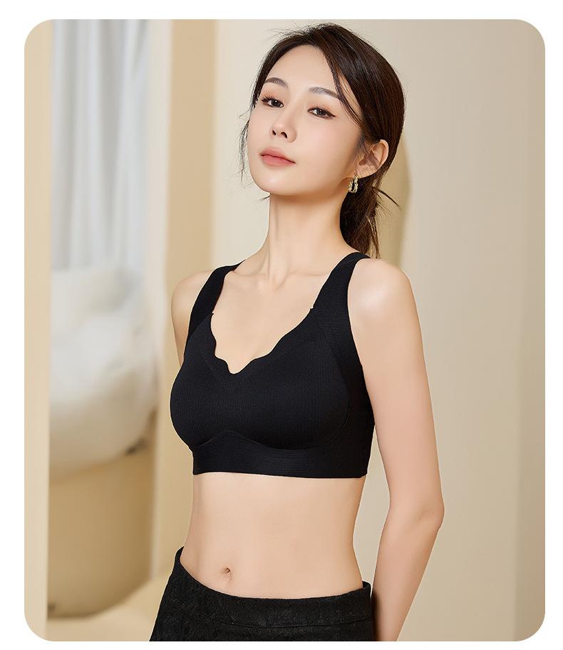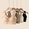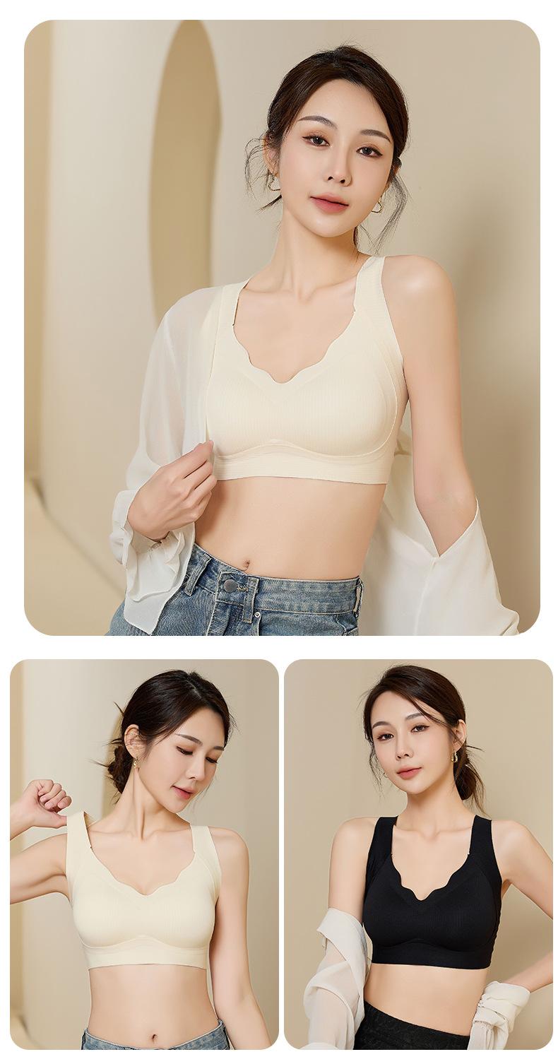 Nova roupa íntima feminina sem costura, almofada interna fixa no peito, peito envolto, verão, sexy, decote em V, ombros largos, colete