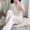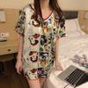 Pijama de Seda Gelo para Mulheres 2024 Novo Verão Fina Moda Decote em V Solta Tamanho Grande Manga Curta Shorts Conjunto Roupa de Casa