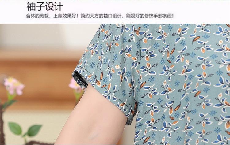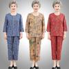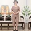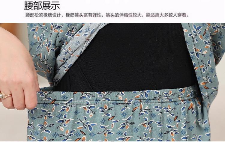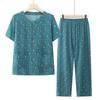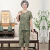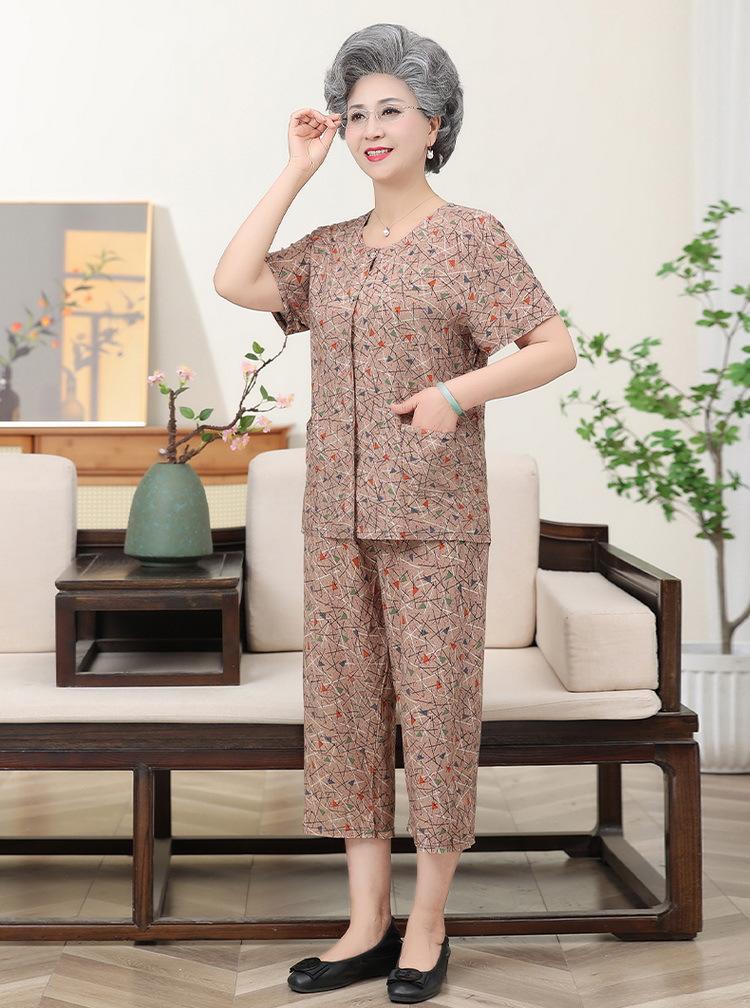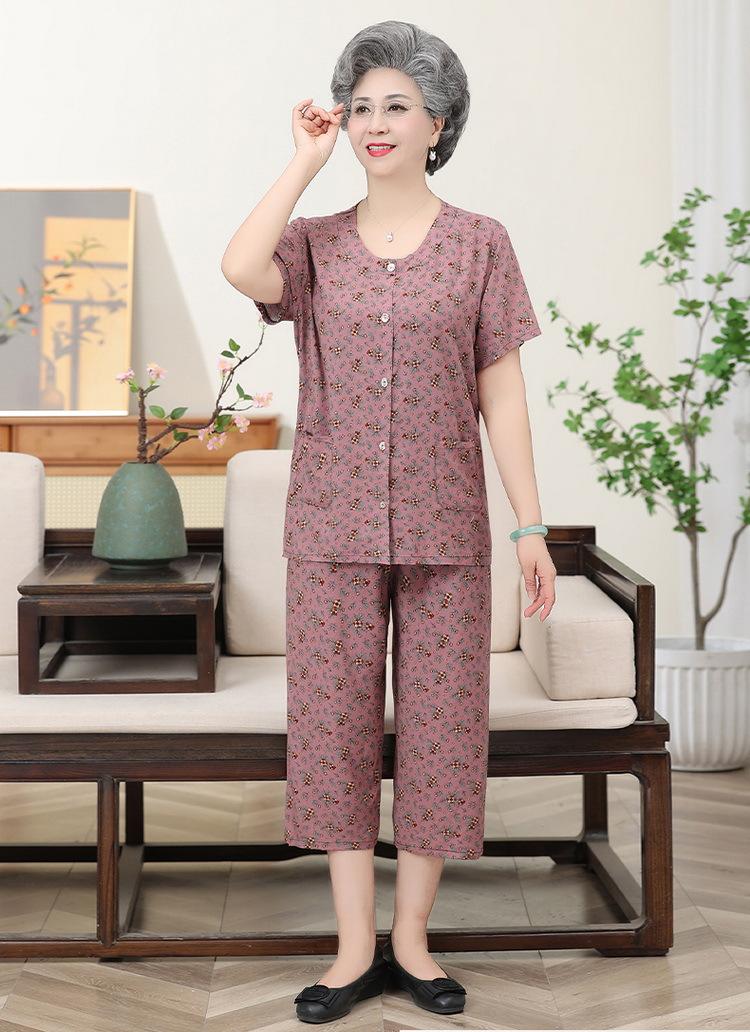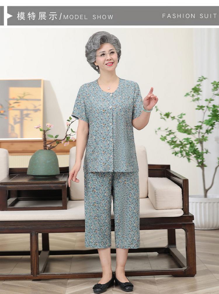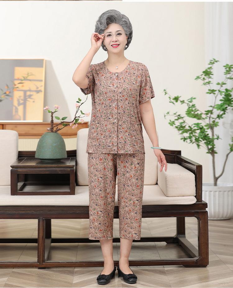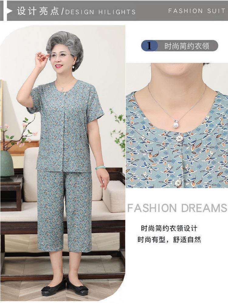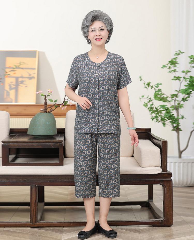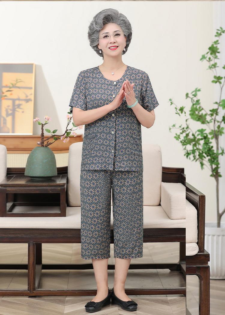Verão Meia-idade e Idosos Mãe Algodão Seda Cardigan Pijama de manga curta terno Algodão artificial Vovó Casa Roupas Conjunto de duas peças