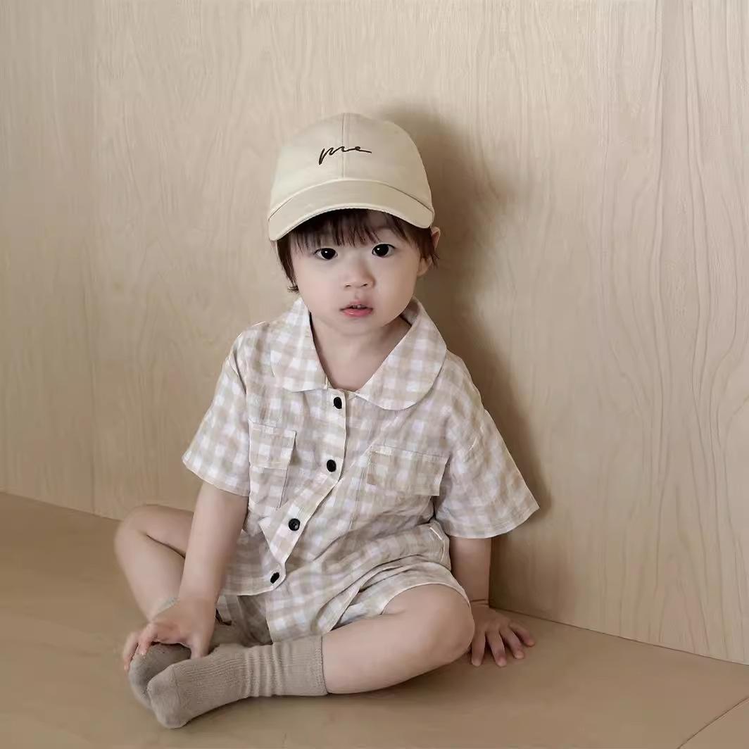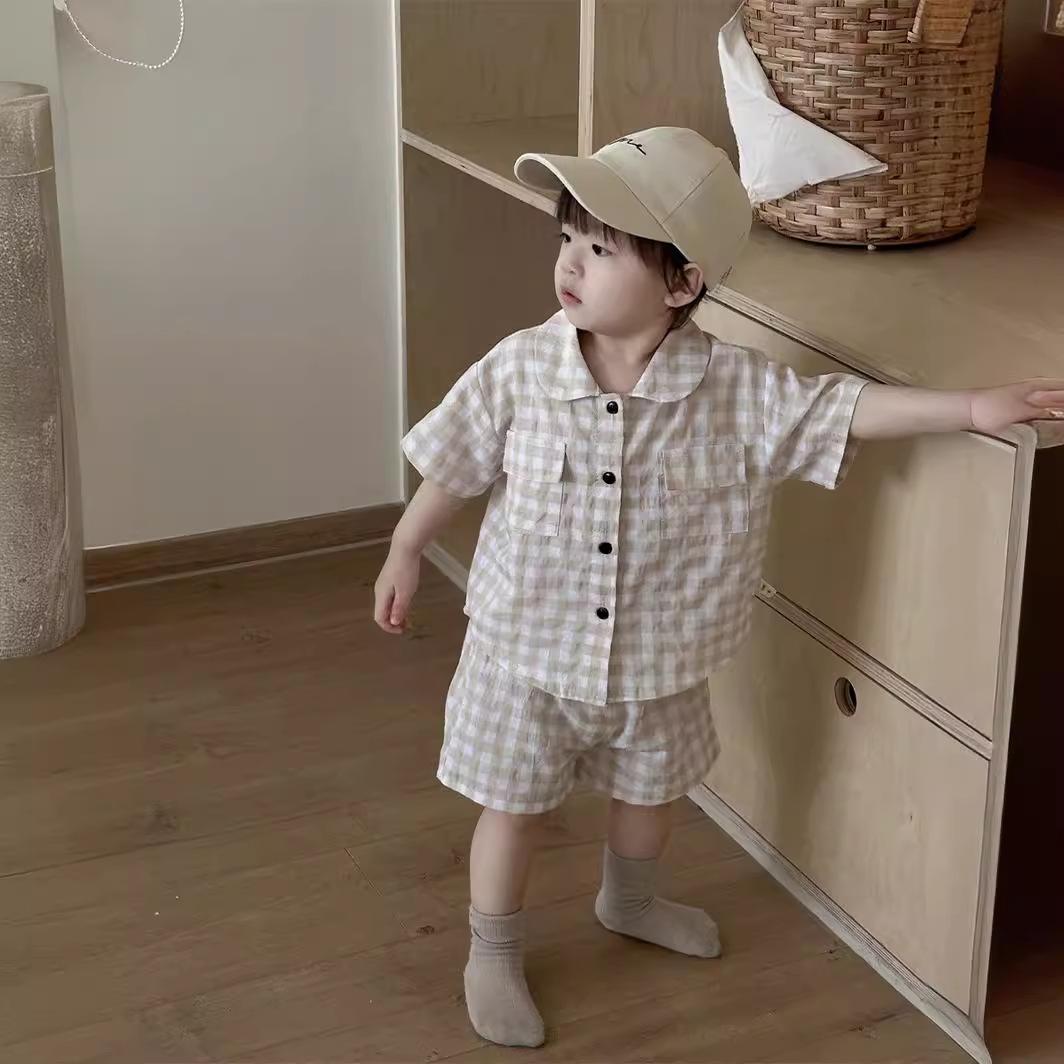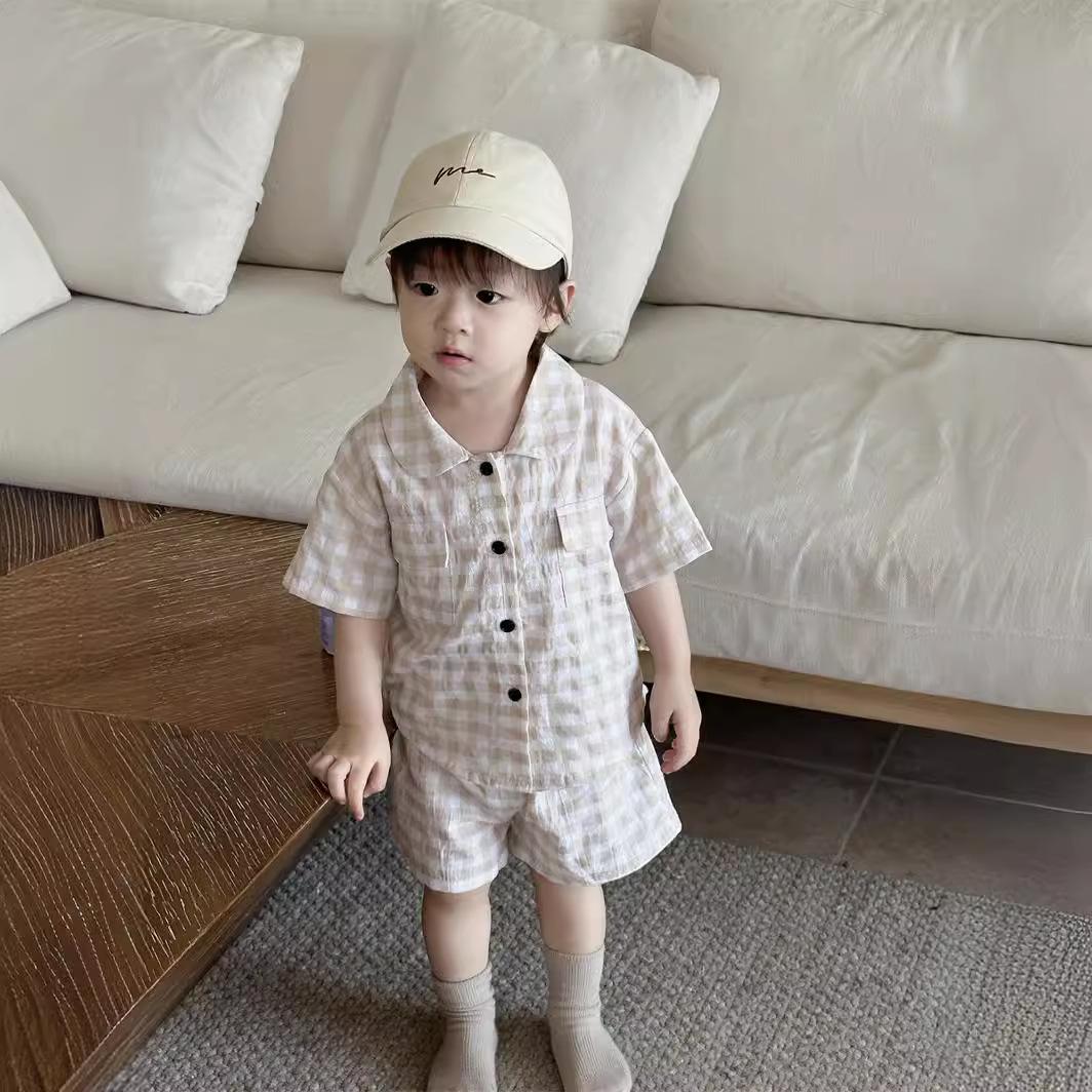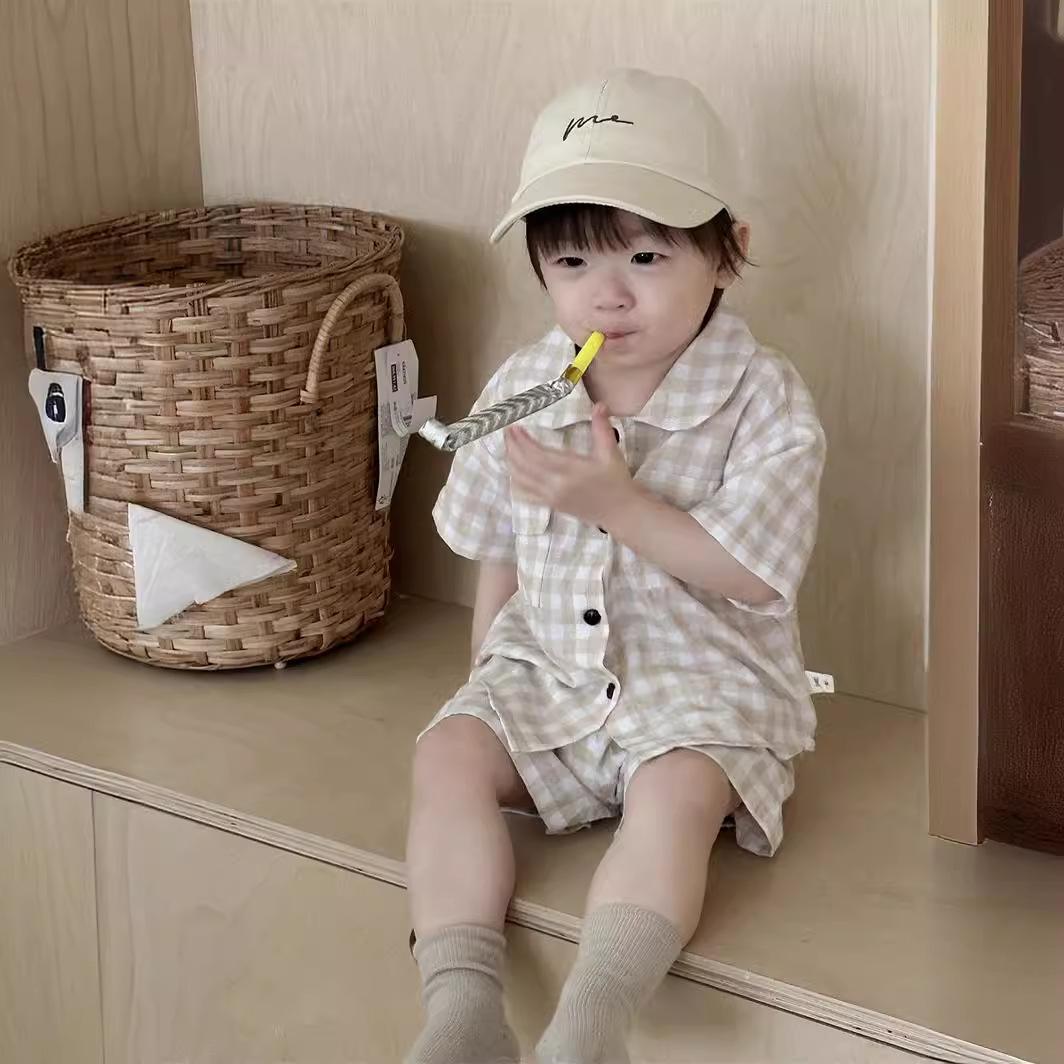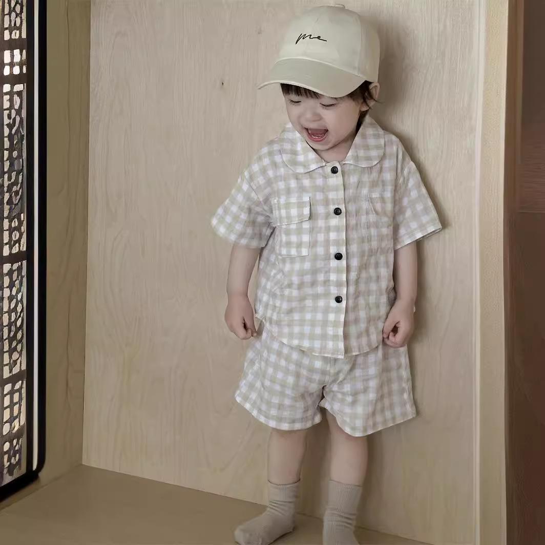 Roupas de Verão para Crianças, Conjunto Xadrez para Bebê Menino, Roupas Infantis Estilo Coreano de Verão 2025, Conjunto de Verão para Bebê de Duas Peças